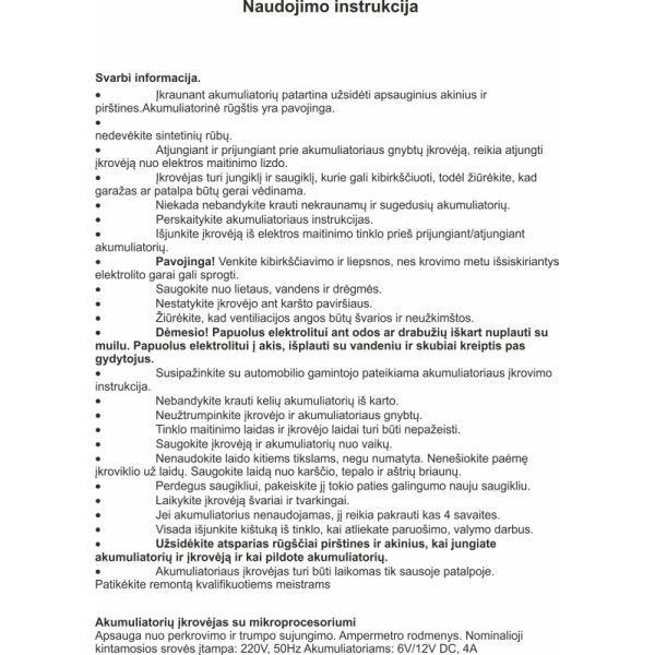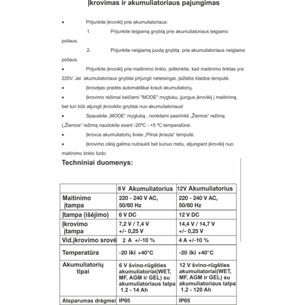 AKUMULIATORIAUS ĮKROVIKLIS IŠMANUSIS 6/12V