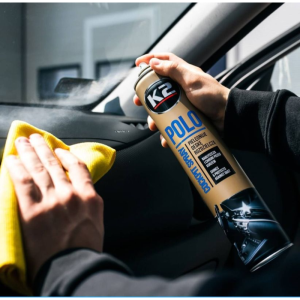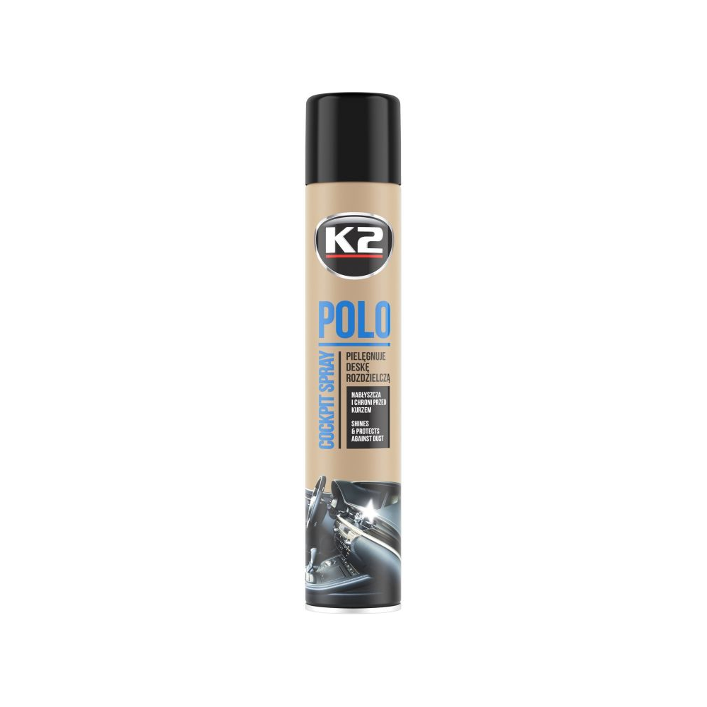 Panelės polirolis puikiai valo, atnaujina ir apsaugo automobilių prietaisų skydelį, medinius, plasmasinius, odinius paviršius. K2 „Polo Cockpit“ nanotechnologijos pagalba veikia daug geriau lyginant su senos kartos valikliais. Specialiai besisukančios silikono nanomolekulės leidžia produktui giliai įsiskverbti į gaminio paviršių ir atnaujinti iki originalaus poveikio. Apsaugo nuo dulkių susidarymo ir ultravioletinių spindulių poveikio. Turi antistatinį poveikį. Nepalieka riebaluoto paviršiaus efekto.