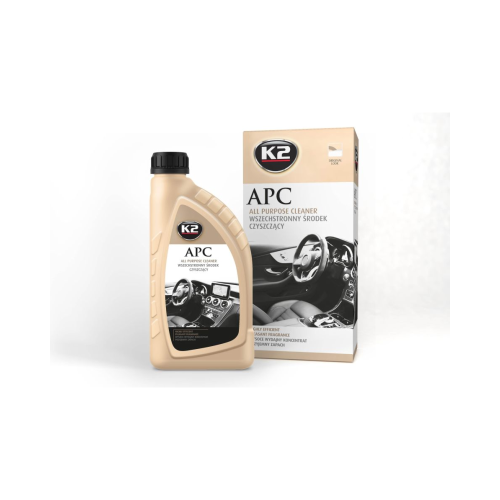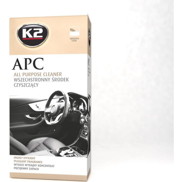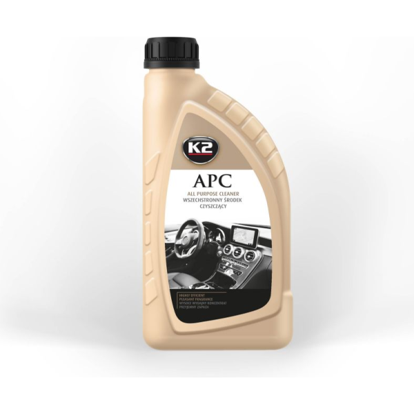 K2“ APC“ yra puiki, plataus naudojimo valymo priemonė, su plataus pritaikymo galimybėmis. Efektyviai veikia net ir ant itin nešvarių paviršių. Idealiai tinka valyti plastiką, vinilą, gumą, padangas, variklio dalis, kilimus, lubų pamušalus, sėdynių apmušalus ir dažytus elementus. Pasižymo neutraliu pH. Po naudojimo juntamas gaivus kvapas, malonu dirbti. .