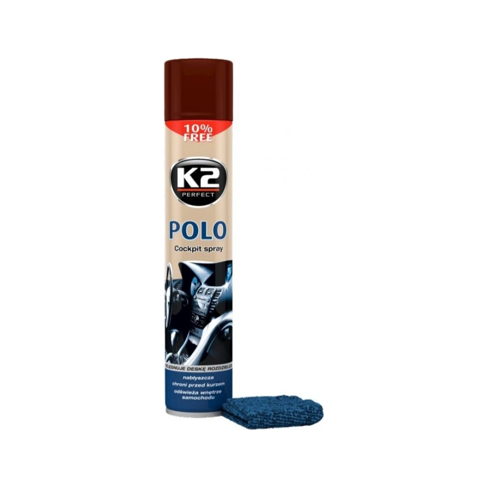 Panelės polirolis puikiai valo, atnaujina ir apsaugo automobilių prietaisų skydelį, medinius, plasmasinius, odinius paviršius. K2 „Polo Cockpit“ nanotechnologijos pagalba veikia daug geriau lyginant su senos kartos valikliais. Specialiai besisukančios silikono nanomolekulės leidžia produktui giliai įsiskverbti į gaminio paviršių ir atnaujinti iki originalaus poveikio. Apsaugo nuo dulkių susidarymo ir ultravioletinių spindulių poveikio. Turi antistatinį poveikį. Nepalieka riebaluoto paviršiaus efekto.