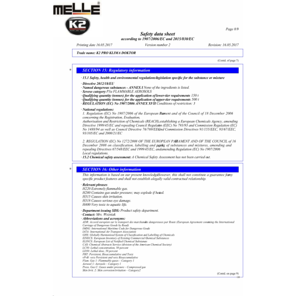 KONDICIONIERIAUS VALIKLIS K2 KLIMA DOKTOR