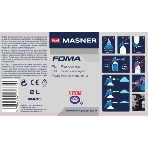 Profesionalus, rankinis, slėginis puršktuvas, skirtas purkšti putojančias medžiagas. Pasižymi dideliu atsparumu įvairioms cheminėms medžiagoms, itin patvarus ir patogus naudoti. Specialaus antgalio pagalba, purškimas vyksta 3 skirtingais būdais. Purkštuvą idealiai tinka naudoti plovyklose, dirbtuvėse ir buityje.