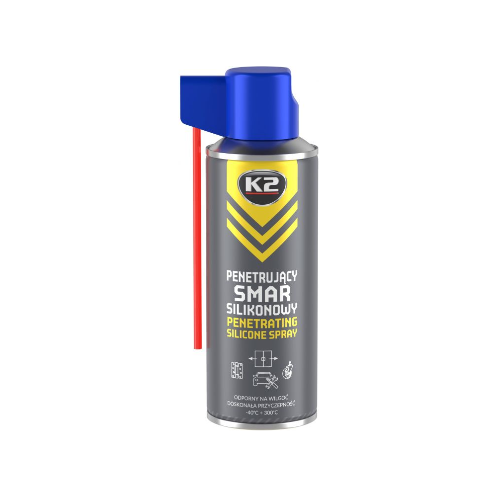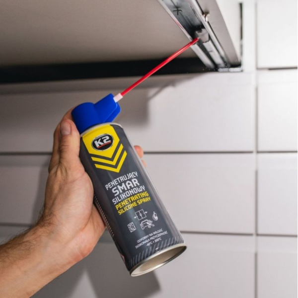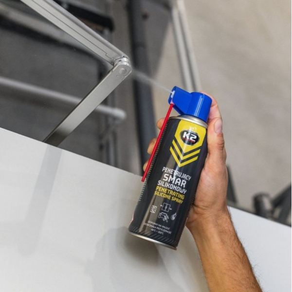 Sintetinis, purškiamas silikonas veikiantis dviem etapais. Pirmajame etape dėl skystos konsistencijos jis pasižymi puikiomis prasiskverbimo savybėmis, o antrame – švelniai sustingsta ir apsaugo nuo drėgmės, korozijos, mažina trintį ir apsaugo nuo slydimo. Galima tepti vyrius, spynas, žarnas, liejimo formas ir kitus elementus, pagamintus iš gumos, metalo, medžio, plastiko. Atsparumas temperatūrai nuo -40 ° C iki +300 ° C. Sudėtyje nėra rūgščių, dervų ir mineralinių priedų.