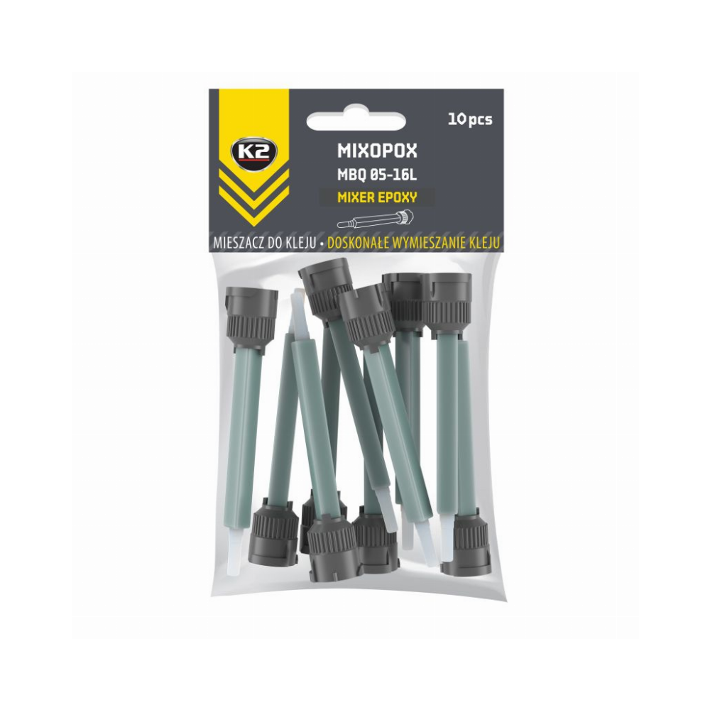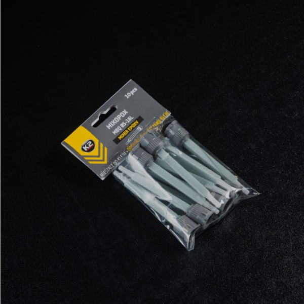 K2 „Mixopox“ dviejų komponentų klijų maišiklis užtikrina saugų klijų naudojimą, matomas visas maišymo ir tekėjimo procesas. Puikios konstrukcijos dėka puikiai tinka tiksliam dozavimui ir maišymui santykiu 1:1. Pašalina oro burbuliukų susidarymo problemą. Sumaišyti komponentai pasižymi dideliu patvarumu. Priemonė pagaminta iš aukštos kokybės polipropileno. K2 „Mixopox“ turi galimybę apipjaustyti antgalį, kad padidėtų sumaišytos medžiagos srautas. Klijų maišiklis yra puiki alternatyva rankinėms dviejų komponentų klijų maišymo technikoms. Dirbti su K2 „Mixopox“ itin paprasta. Dozatorius visiškai suderinamas darbui su B478 K2 „Plastipox“ epoksidiniais klijais (plastiko klijais) ir B477 K2 „Steelpox“ (metalo klijais).