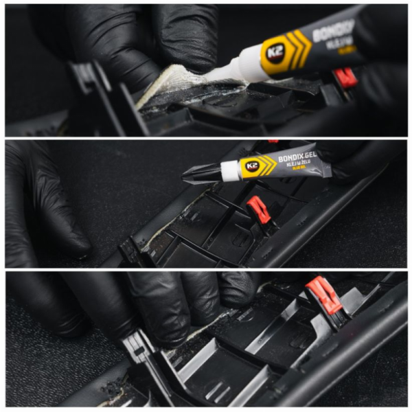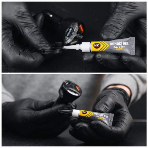 Naudojimas: Nuvalykite ir nuriebalinkite paviršių. Nedidelį kiekį K2 „Bondix Gel“ klijų užtepkite ant vieno iš klijuojamų paviršių, sudėkite ir tvirtai juos spauskite 10 - 30 sekundžių. Kuo plonesnis klijų sluoksnis, tuo stipriau susiklijuos.