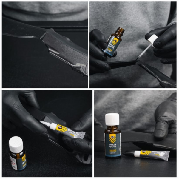 Kartu su K2 gruntu „PROLOK WC-70“ efektyviai klijuoja tokias medžiagas kaip: polipropilenas (PP), polietilenas (PE), EPDM, politetrafluoretenas PTFE ir guma.