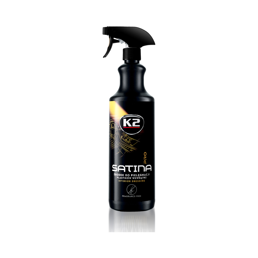 „K2 SATINA PRO“ profesionali, labai koncentruota ir išskirtinė, greito naudojimo priemonė, skirta profesionaliai prižiūrėti prietaisų skydelį ir visas plastikines dalis automobilio interjerui. Sukurtas reikliausiems automobilių priežiūros entuziastams. Naujoviškas gaminys atkuria pradinę plastiko, vinilo ar gumos dalių spalvą, giliai įsiskverbia į paviršių, pabrėžia spalvą ir natūralią jos tekstūrą. Palieka į satiną panašų efektą, be riebios ar blizgios išvaizdos. Sudėtyje yra antistatinių priedų, kurie atstumia nešvarumus ir dulkes nuo paviršiaus. Sudėtyje esantys naujausi priedai užtikrina idealią apsaugą nuo saulės UV žalingų efektų , suteikdami paviršiams ilgalaikę apsaugą . Panaudojus K2 „ Satin“ automobilyje bus ilgai juntamas gaivos ir švaros jausmas.