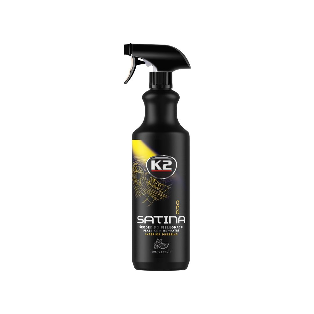 „K2 SATINA PRO“ profesionali, labai koncentruota ir išskirtinė, greito naudojimo priemonė, skirta profesionaliai prižiūrėti prietaisų skydelį ir visas plastikines dalis automobilio interjerui. Sukurtas reikliausiems automobilių priežiūros entuziastams. Naujoviškas gaminys atkuria pradinę plastiko, vinilo ar gumos dalių spalvą, giliai įsiskverbia į paviršių, pabrėžia spalvą ir natūralią jos tekstūrą. Palieka į satiną panašų efektą, be riebios ar blizgios išvaizdos. Sudėtyje yra antistatinių priedų, kurie atstumia nešvarumus ir dulkes nuo paviršiaus. Sudėtyje esantys naujausi priedai užtikrina idealią apsaugą nuo saulės UV žalingų efektų , suteikdami paviršiams ilgalaikę apsaugą . Panaudojus K2 „ Satin“ automobilyje bus ilgai juntamas gaivos ir švaros jausmas. Naudojimas: Padenkite priemonę ant mikropluošto šluostės arba tiesiai ant paviršiaus. Paskleiskite gaminį ir nušluostykite.