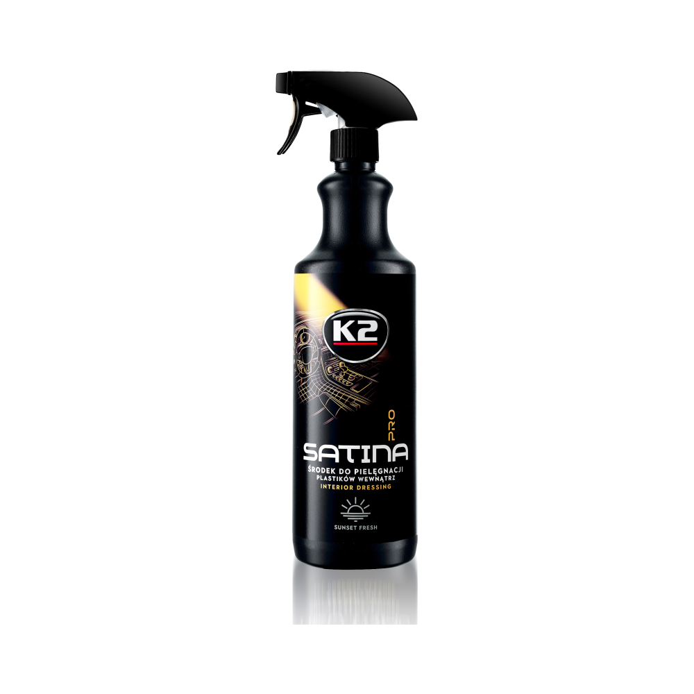„K2 SATINA PRO“ profesionali, labai koncentruota ir išskirtinė, greito naudojimo priemonė, skirta profesionaliai prižiūrėti prietaisų skydelį ir visas plastikines dalis automobilio interjerui. Sukurtas reikliausiems automobilių priežiūros entuziastams. Naujoviškas gaminys atkuria pradinę plastiko, vinilo ar gumos dalių spalvą, giliai įsiskverbia į paviršių, pabrėžia spalvą ir natūralią jos tekstūrą. Palieka į satiną panašų efektą, be riebios ar blizgios išvaizdos. Sudėtyje yra antistatinių priedų, kurie atstumia nešvarumus ir dulkes nuo paviršiaus. Sudėtyje esantys naujausi priedai užtikrina idealią apsaugą nuo saulės UV žalingų efektų , suteikdami paviršiams ilgalaikę apsaugą . Panaudojus K2 „ Satin“ automobilyje bus ilgai juntamas gaivos ir švaros jausmas. Naudojimas: Padenkite priemonę ant mikropluošto šluostės arba tiesiai ant paviršiaus. Paskleiskite gaminį ir nušluostykite.
