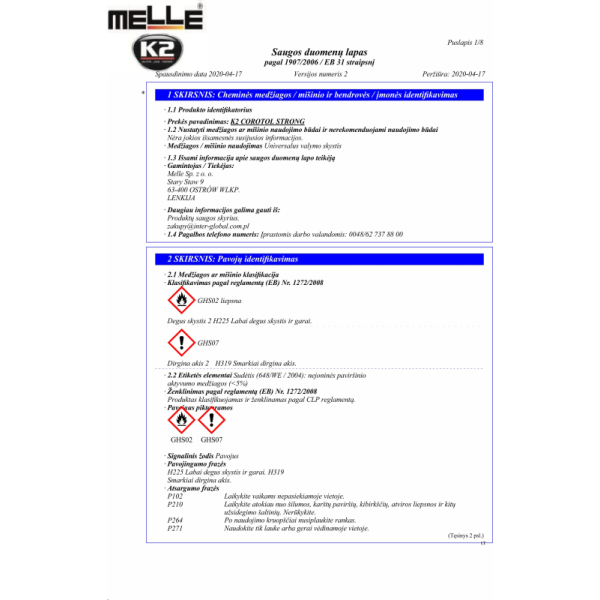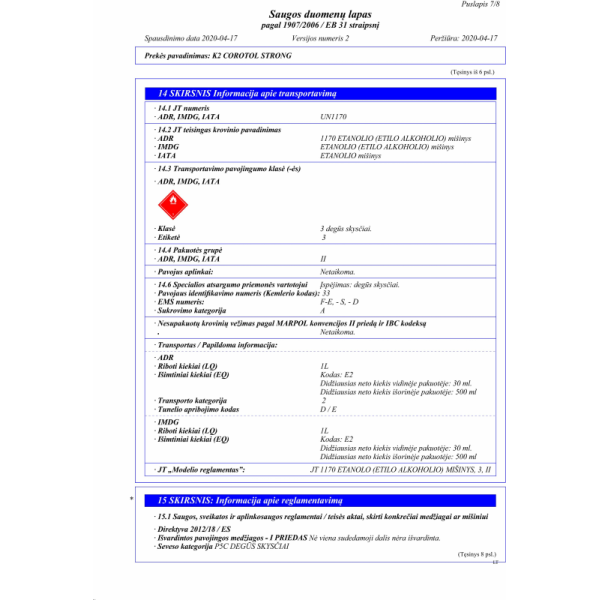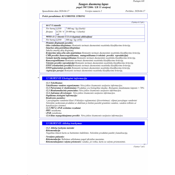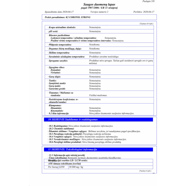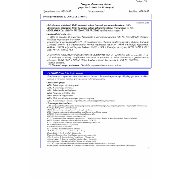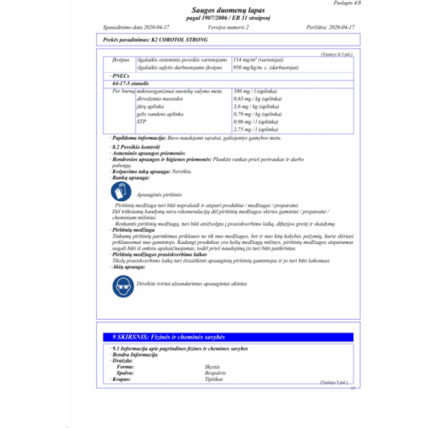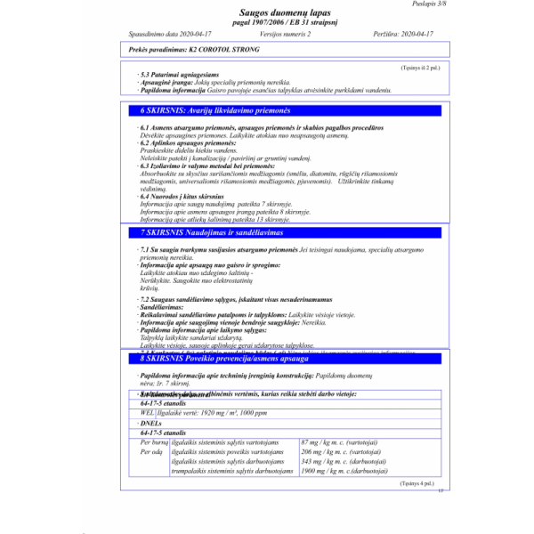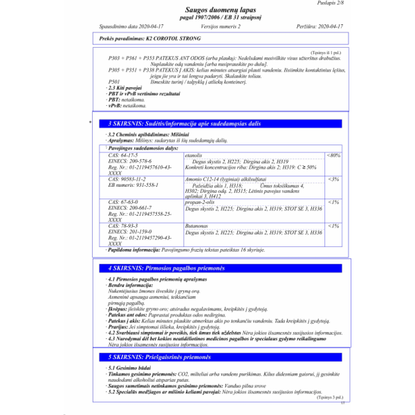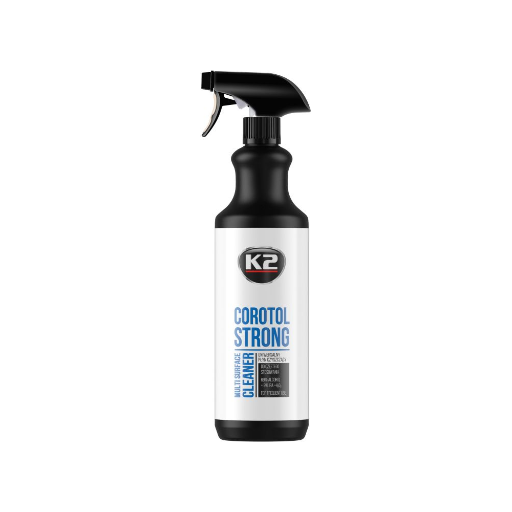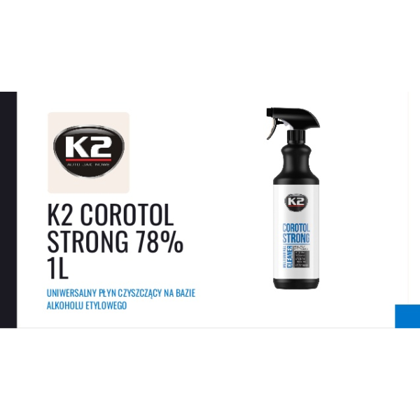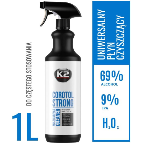 COROTOL STRONG yra veiksmingas dezinfekavimo skystis, kurio sudėtyje yra iki 69proc etilo alkoholio, sustiprinto 9proc izopropanolio ir vandenilio peroksido. Skirta dažnai valyti metalinius, laminuotus, stiklinius, keraminius paviršius, durų rankenas, turėklus, rankenas, biuro įrangą, mobiliuosius telefonus, mokėjimo terminalus ir kt. Rekomenduojama sistemingai naudoti siekiant pašalinti pavojingus nešvarumus, naikina bakterijas ir virusus (ir COVID-19 virusą).