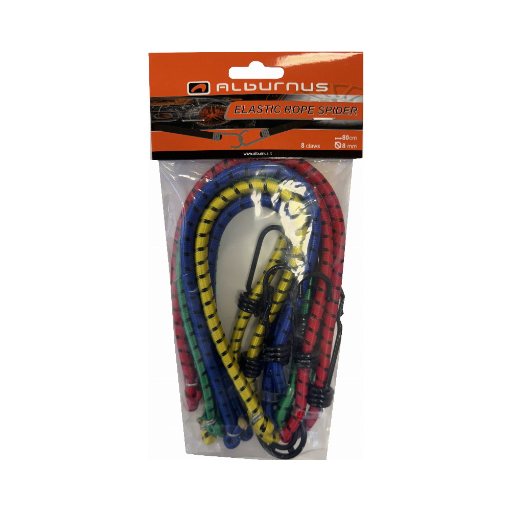 ELASTINĖS KROVINO TVIRTINIMO VIRVUTĖS 4 VNT SPIDER 8MM X 80CM