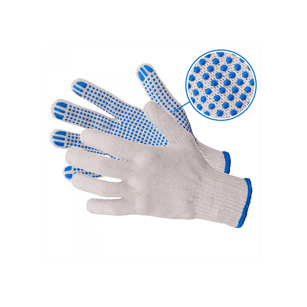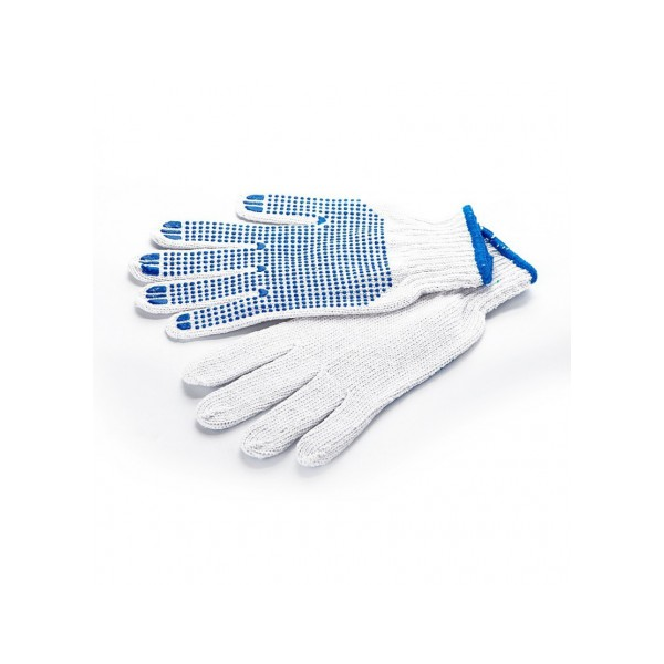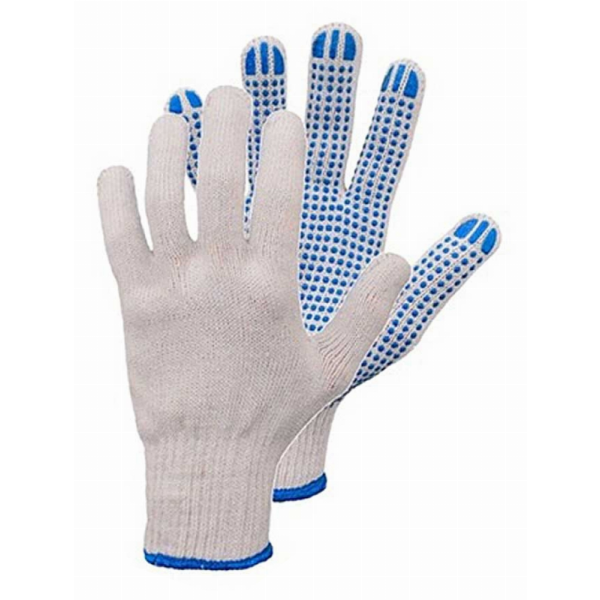 Taškuotos pirštinės, pagamintos iš polimedvilnės mišinio, (iš medvilnės ir poliesterio derinio), užtikrinant minkštumo, laidumo orui ir patvarumo pusiausvyrą. Pirštinės patobulintos PVC taškeliais ant delnų ir pirštų, kurie užtikrina geresnį sukibimą ir kontrolę. Šios pirštinės idealiai tinka tokioms užduotims kaip slidžių objektų tvarkymas, surinkimo darbai, pakavimas ar lengvosios pramonės užduotys. Polimedvilnės medžiaga užtikrina komfortą ir lankstumą, o PVC taškeliai padeda išvengti slydimo ir suteikia papildomą sukibimą, todėl jos puikiai tinka užduotims, kurioms reikalingas tvirtas, neslystantis sukibimas.