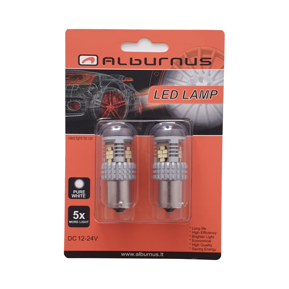 LEMPUTĖS P21W/R5W/R10W LED 24SMD CANBUS BA15S 12-24V (2VNT)