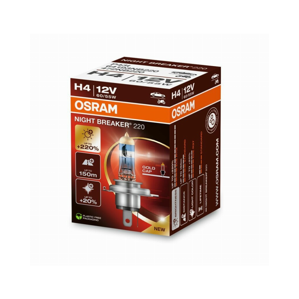 OSRAM LEMPUTĖS H4 60/55W 12V +220proc P43T