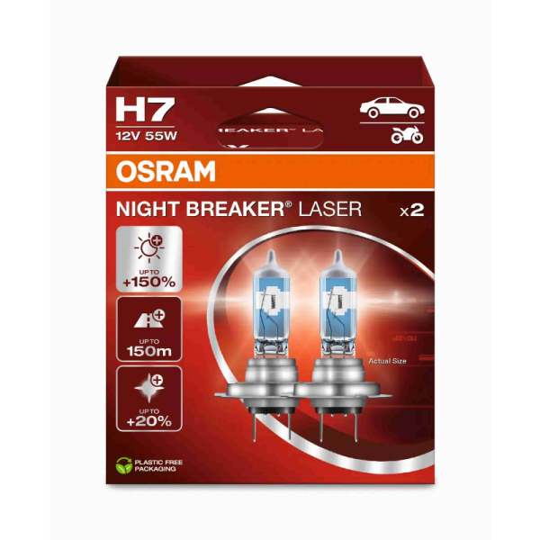 OSRAM LEMPUTĖS H7 55W 12V NIGHT BREAKER LASER +150proc
