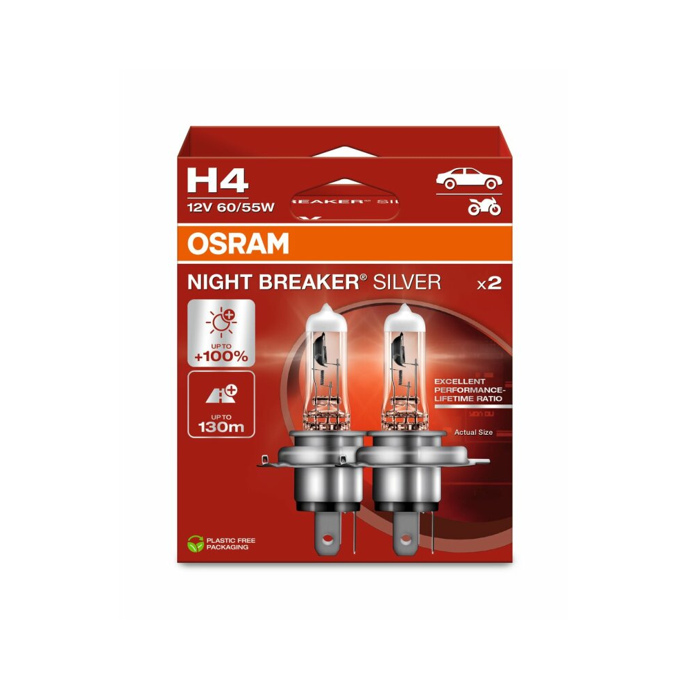 OSRAM LEMPUTĖS H4 60/55W 12V P43T +100proc NIGHT BREAKER SILVER