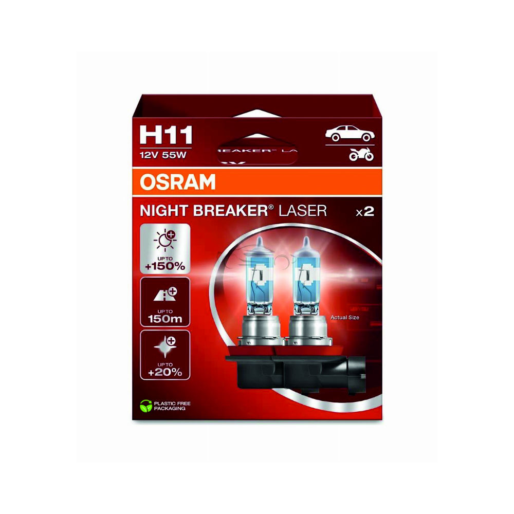 OSRAM LEMPUTĖS H11 55W 12V PGJ19-2 +150proc NIGHT BREAKER LASER