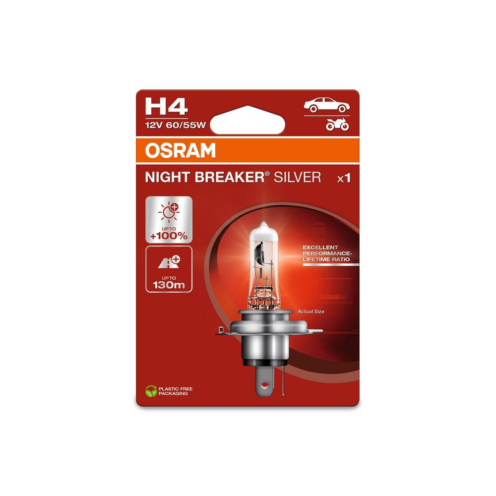 OSRAM LEMPUTĖS H4 60/55W 12V P43T +100proc NIGHT BREAKER SILVER