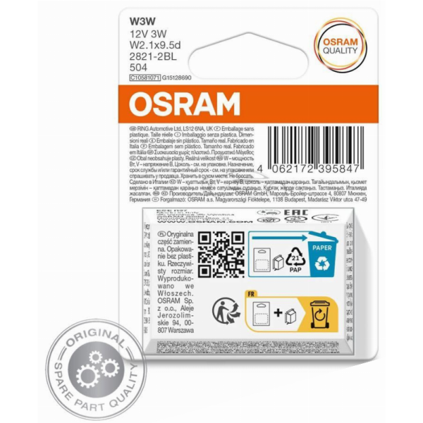 OSRAM LEMPUTĖS W3W 12V 3W W21X95D