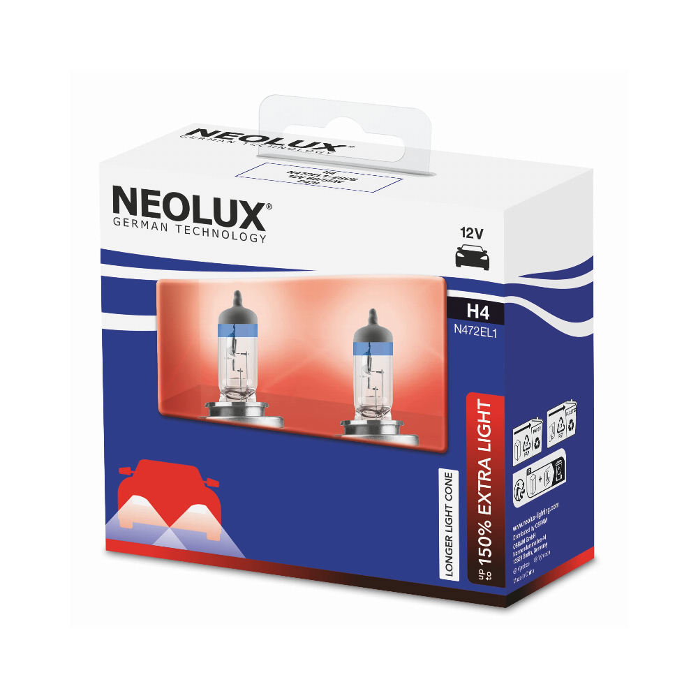 NEOLUX LEMPUTĖS H4 12V 60/55W P43T +150proc EXTRA LIGHT