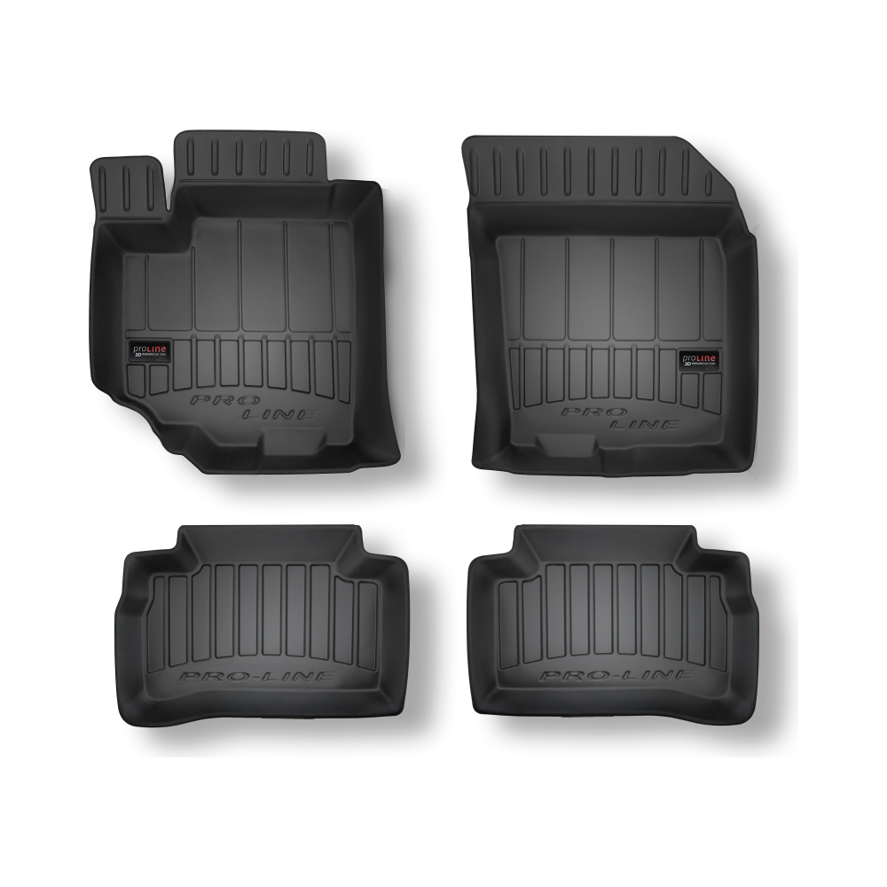 Guminiai ProLine 3D kilimėliai: (aukštos kokybės plastiko, gumos mišinys / TPE, komplektas - 4vnt., juodi, krašto aukštis 7 cm, montavimo būdas - spaustukai).AUTOMOBILIŲ KILIMĖLIAI FROGUM 3D PROLINE LUXURY• Dėl naujoviškos 3D skenavimo technologijos atitinka idealiai; • Kraštai papildomai apsaugoti – aukštis 7 cm, visada švarus automobilis; • Itin patvari medžiaga su unikalia neslystančia struktūra, atspari nešvarumams. • Išskirtinis stabilumas dėl spaustukų – lengvai montuojama spustelėjus; • Pakojo zonos apsauga – komfortas, leidžiantis nuleisti vairuotojo koją;3D ProLine aukštos kokybės guminiai kilimėliai padeda išlaikyti automobilį švarų. Modernus ir funkcionalus dizainas, ir ypač aukštas kraštas garantuoja efektyvų vandens ir purvo surinkimą ir neleidžia jiems išbėgti. Taip automobilio salonas išlieka švarus. Pagaminti iš aukštos kokybės gumos, kurioje nėra toksiškų komponentų. Bekvapis. Kilimėliai idealiai atitinka ir puikiai priglunda prie salono grindų. Guminiai kilimėliai išlaiko savo elastingumą net esant temperatūros pokyčiams. Specialus paviršius neleidžia kilimėliams slysti vairuojant, o tai daro didelę įtaką saugumui ir kelionės patogumui
