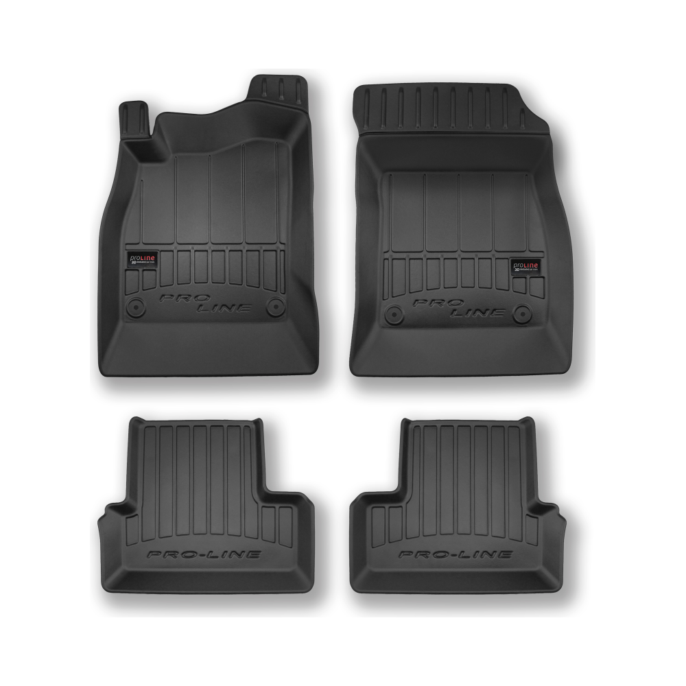Guminiai ProLine 3D kilimėliai: (aukštos kokybės plastiko, gumos mišinys / TPE, komplektas - 4vnt., juodi, krašto aukštis 7 cm, montavimo būdas - spaustukai).AUTOMOBILIŲ KILIMĖLIAI FROGUM 3D PROLINE LUXURY• Dėl naujoviškos 3D skenavimo technologijos atitinka idealiai; • Kraštai papildomai apsaugoti – aukštis 7 cm, visada švarus automobilis; • Itin patvari medžiaga su unikalia neslystančia struktūra, atspari nešvarumams. • Išskirtinis stabilumas dėl spaustukų – lengvai montuojama spustelėjus; • Pakojo zonos apsauga – komfortas, leidžiantis nuleisti vairuotojo koją;3D ProLine aukštos kokybės guminiai kilimėliai padeda išlaikyti automobilį švarų. Modernus ir funkcionalus dizainas, ir ypač aukštas kraštas garantuoja efektyvų vandens ir purvo surinkimą ir neleidžia jiems išbėgti. Taip automobilio salonas išlieka švarus. Pagaminti iš aukštos kokybės gumos, kurioje nėra toksiškų komponentų. Bekvapis. Kilimėliai idealiai atitinka ir puikiai priglunda prie salono grindų. Guminiai kilimėliai išlaiko savo elastingumą net esant temperatūros pokyčiams. Specialus paviršius neleidžia kilimėliams slysti vairuojant, o tai daro didelę įtaką saugumui ir kelionės patogumui