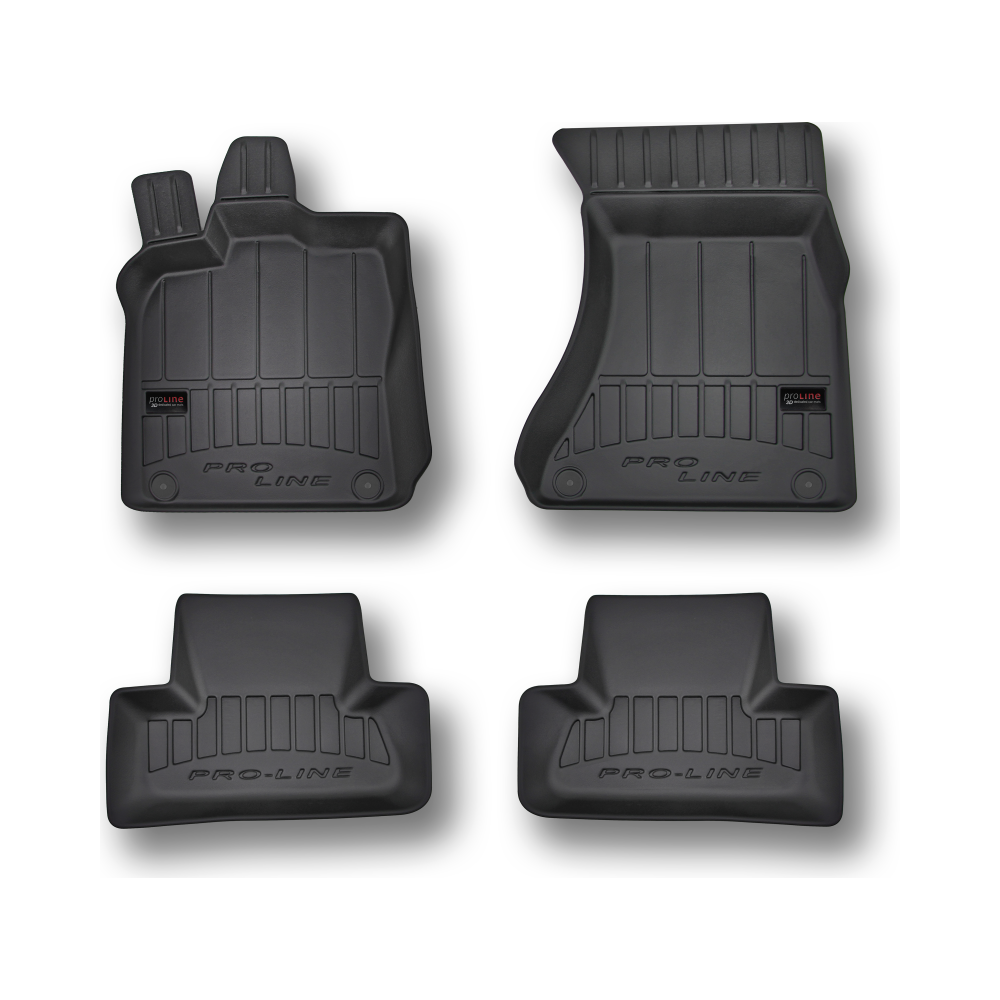Guminiai ProLine 3D kilimėliai: (aukštos kokybės plastiko, gumos mišinys / TPE, komplektas - 4vnt., juodi, krašto aukštis 7 cm, montavimo būdas - spaustukai).AUTOMOBILIŲ KILIMĖLIAI FROGUM 3D PROLINE LUXURY• Dėl naujoviškos 3D skenavimo technologijos atitinka idealiai; • Kraštai papildomai apsaugoti – aukštis 7 cm, visada švarus automobilis; • Itin patvari medžiaga su unikalia neslystančia struktūra, atspari nešvarumams. • Išskirtinis stabilumas dėl spaustukų – lengvai montuojama spustelėjus; • Pakojo zonos apsauga – komfortas, leidžiantis nuleisti vairuotojo koją;3D ProLine aukštos kokybės guminiai kilimėliai padeda išlaikyti automobilį švarų. Modernus ir funkcionalus dizainas, ir ypač aukštas kraštas garantuoja efektyvų vandens ir purvo surinkimą ir neleidžia jiems išbėgti. Taip automobilio salonas išlieka švarus. Pagaminti iš aukštos kokybės gumos, kurioje nėra toksiškų komponentų. Bekvapis. Kilimėliai idealiai atitinka ir puikiai priglunda prie salono grindų. Guminiai kilimėliai išlaiko savo elastingumą net esant temperatūros pokyčiams. Specialus paviršius neleidžia kilimėliams slysti vairuojant, o tai daro didelę įtaką saugumui ir kelionės patogumui