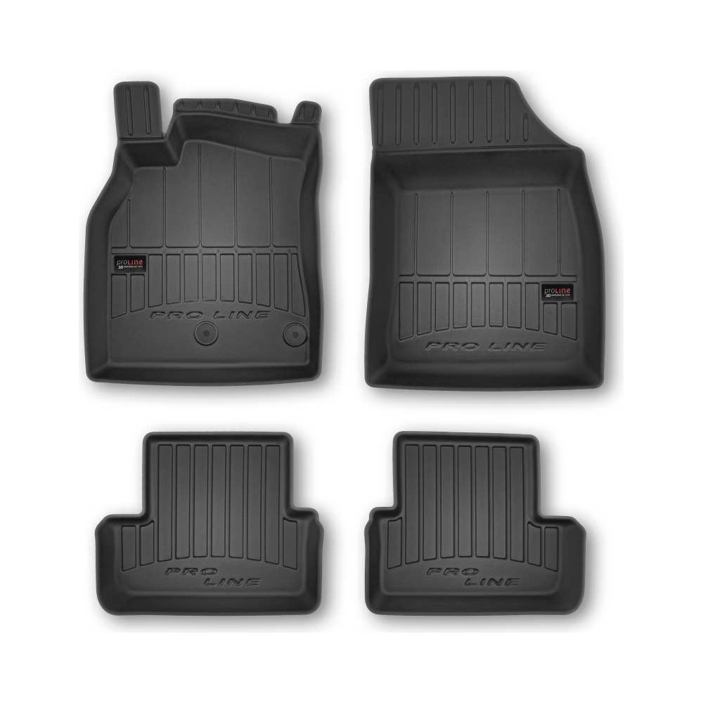 Guminiai ProLine 3D kilimėliai: (aukštos kokybės plastiko, gumos mišinys / TPE, komplektas - 4vnt., juodi, krašto aukštis 7 cm, montavimo būdas - spaustukai).AUTOMOBILIŲ KILIMĖLIAI FROGUM 3D PROLINE LUXURY• Dėl naujoviškos 3D skenavimo technologijos atitinka idealiai; • Kraštai papildomai apsaugoti – aukštis 7 cm, visada švarus automobilis; • Itin patvari medžiaga su unikalia neslystančia struktūra, atspari nešvarumams. • Išskirtinis stabilumas dėl spaustukų – lengvai montuojama spustelėjus; • Pakojo zonos apsauga – komfortas, leidžiantis nuleisti vairuotojo koją;3D ProLine aukštos kokybės guminiai kilimėliai padeda išlaikyti automobilį švarų. Modernus ir funkcionalus dizainas, ir ypač aukštas kraštas garantuoja efektyvų vandens ir purvo surinkimą ir neleidžia jiems išbėgti. Taip automobilio salonas išlieka švarus. Pagaminti iš aukštos kokybės gumos, kurioje nėra toksiškų komponentų. Bekvapis. Kilimėliai idealiai atitinka ir puikiai priglunda prie salono grindų. Guminiai kilimėliai išlaiko savo elastingumą net esant temperatūros pokyčiams. Specialus paviršius neleidžia kilimėliams slysti vairuojant, o tai daro didelę įtaką saugumui ir kelionės patogumui
