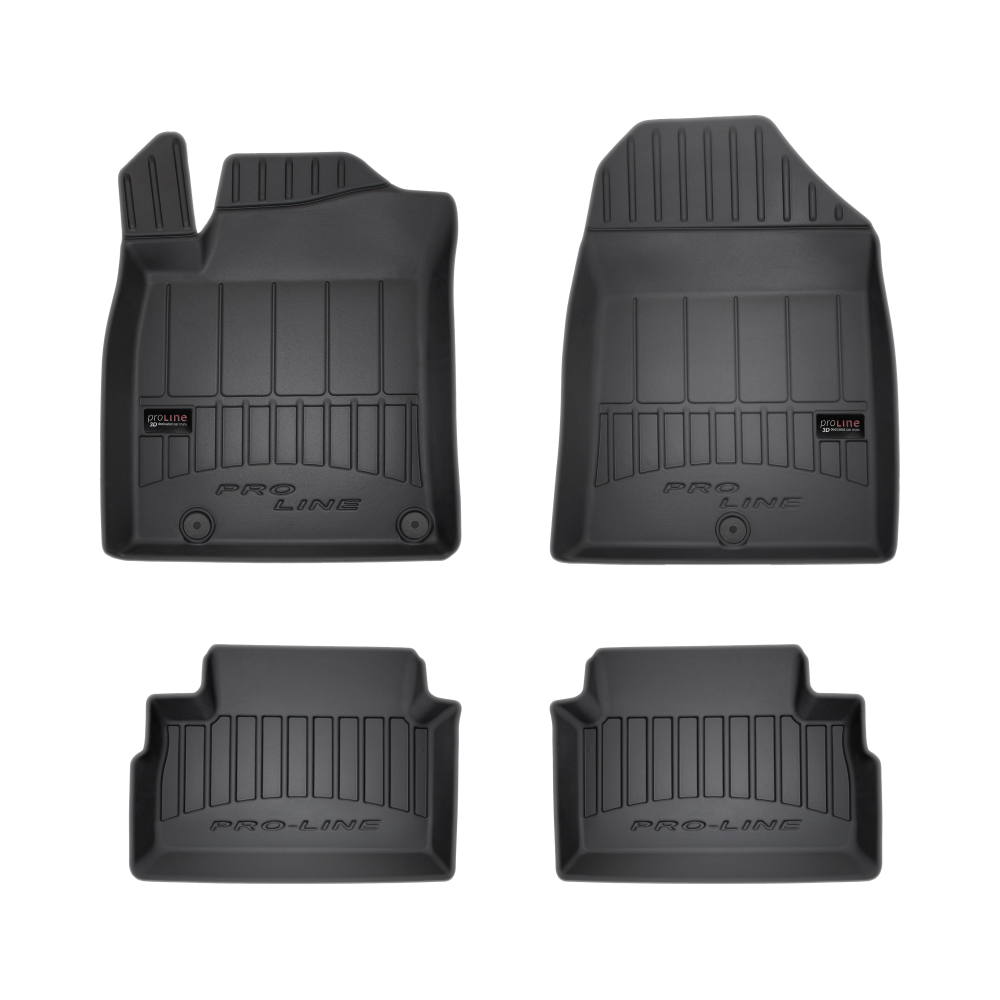 Guminiai ProLine 3D kilimėliai: (aukštos kokybės plastiko, gumos mišinys / TPE, komplektas - 4vnt., juodi, krašto aukštis 7 cm, montavimo būdas - spaustukai).AUTOMOBILIŲ KILIMĖLIAI FROGUM 3D PROLINE LUXURY• Dėl naujoviškos 3D skenavimo technologijos atitinka idealiai; • Kraštai papildomai apsaugoti – aukštis 7 cm, visada švarus automobilis; • Itin patvari medžiaga su unikalia neslystančia struktūra, atspari nešvarumams. • Išskirtinis stabilumas dėl spaustukų – lengvai montuojama spustelėjus; • Pakojo zonos apsauga – komfortas, leidžiantis nuleisti vairuotojo koją;3D ProLine aukštos kokybės guminiai kilimėliai padeda išlaikyti automobilį švarų. Modernus ir funkcionalus dizainas, ir ypač aukštas kraštas garantuoja efektyvų vandens ir purvo surinkimą ir neleidžia jiems išbėgti. Taip automobilio salonas išlieka švarus. Pagaminti iš aukštos kokybės gumos, kurioje nėra toksiškų komponentų. Bekvapis. Kilimėliai idealiai atitinka ir puikiai priglunda prie salono grindų. Guminiai kilimėliai išlaiko savo elastingumą net esant temperatūros pokyčiams. Specialus paviršius neleidžia kilimėliams slysti vairuojant, o tai daro didelę įtaką saugumui ir kelionės patogumui