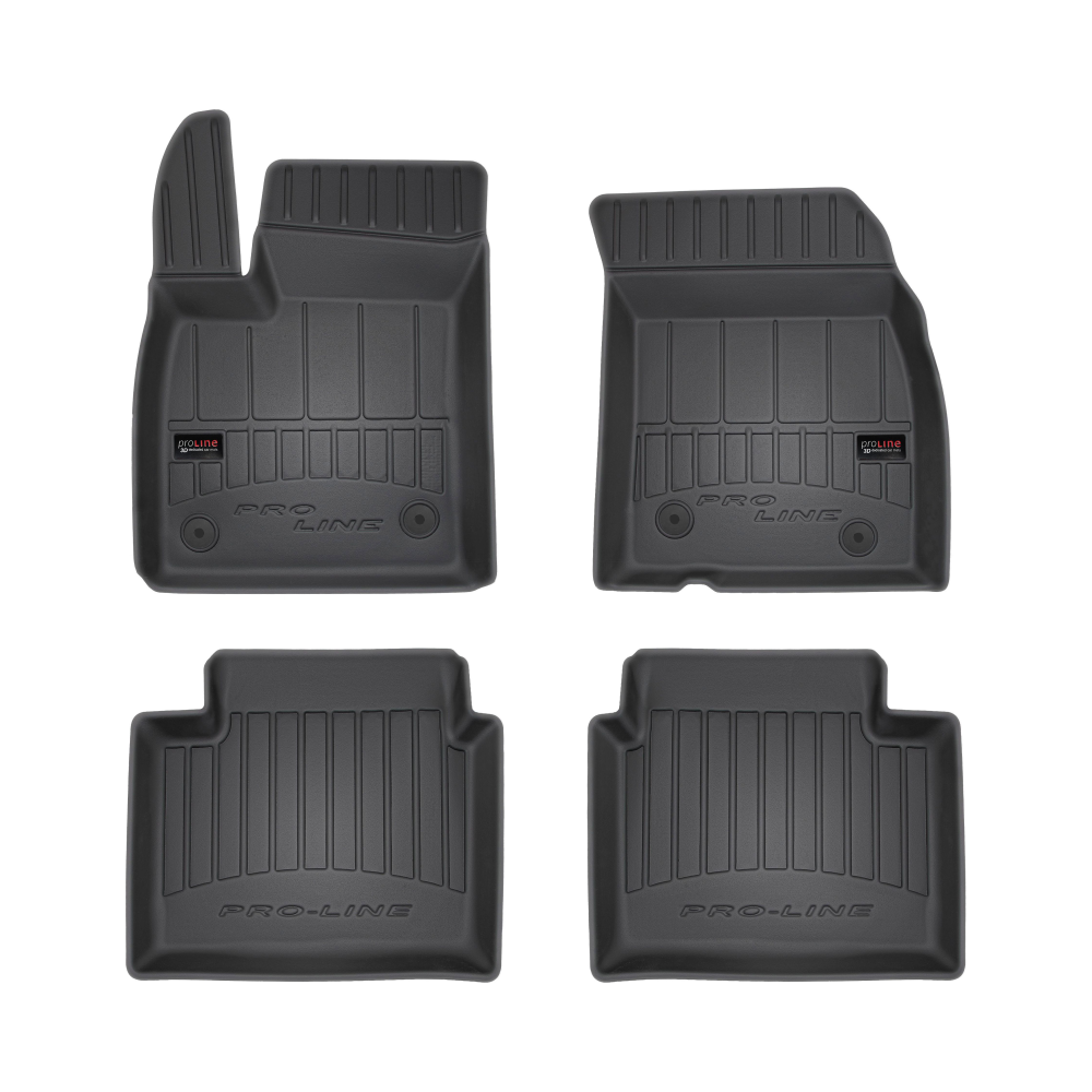 Guminiai ProLine 3D kilimėliai: (aukštos kokybės plastiko, gumos mišinys / TPE, komplektas - 4vnt., juodi, krašto aukštis 7 cm, montavimo būdas - spaustukai).AUTOMOBILIŲ KILIMĖLIAI FROGUM 3D PROLINE LUXURY• Dėl naujoviškos 3D skenavimo technologijos atitinka idealiai; • Kraštai papildomai apsaugoti – aukštis 7 cm, visada švarus automobilis; • Itin patvari medžiaga su unikalia neslystančia struktūra, atspari nešvarumams. • Išskirtinis stabilumas dėl spaustukų – lengvai montuojama spustelėjus; • Pakojo zonos apsauga – komfortas, leidžiantis nuleisti vairuotojo koją;3D ProLine aukštos kokybės guminiai kilimėliai padeda išlaikyti automobilį švarų. Modernus ir funkcionalus dizainas, ir ypač aukštas kraštas garantuoja efektyvų vandens ir purvo surinkimą ir neleidžia jiems išbėgti. Taip automobilio salonas išlieka švarus. Pagaminti iš aukštos kokybės gumos, kurioje nėra toksiškų komponentų. Bekvapis. Kilimėliai idealiai atitinka ir puikiai priglunda prie salono grindų. Guminiai kilimėliai išlaiko savo elastingumą net esant temperatūros pokyčiams. Specialus paviršius neleidžia kilimėliams slysti vairuojant, o tai daro didelę įtaką saugumui ir kelionės patogumui