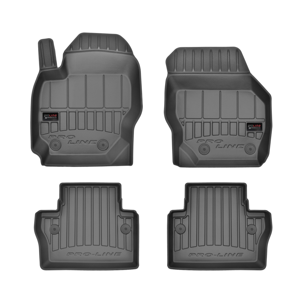 Guminiai ProLine 3D kilimėliai: (aukštos kokybės plastiko, gumos mišinys / TPE, komplektas - 4vnt., juodi, krašto aukštis 7 cm, montavimo būdas - spaustukai).AUTOMOBILIŲ KILIMĖLIAI FROGUM 3D PROLINE LUXURY• Dėl naujoviškos 3D skenavimo technologijos atitinka idealiai; • Kraštai papildomai apsaugoti – aukštis 7 cm, visada švarus automobilis; • Itin patvari medžiaga su unikalia neslystančia struktūra, atspari nešvarumams. • Išskirtinis stabilumas dėl spaustukų – lengvai montuojama spustelėjus; • Pakojo zonos apsauga – komfortas, leidžiantis nuleisti vairuotojo koją;3D ProLine aukštos kokybės guminiai kilimėliai padeda išlaikyti automobilį švarų. Modernus ir funkcionalus dizainas, ir ypač aukštas kraštas garantuoja efektyvų vandens ir purvo surinkimą ir neleidžia jiems išbėgti. Taip automobilio salonas išlieka švarus. Pagaminti iš aukštos kokybės gumos, kurioje nėra toksiškų komponentų. Bekvapis. Kilimėliai idealiai atitinka ir puikiai priglunda prie salono grindų. Guminiai kilimėliai išlaiko savo elastingumą net esant temperatūros pokyčiams. Specialus paviršius neleidžia kilimėliams slysti vairuojant, o tai daro didelę įtaką saugumui ir kelionės patogumui