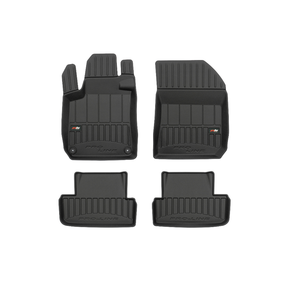 Guminiai ProLine 3D kilimėliai: (aukštos kokybės plastiko, gumos mišinys / TPE, komplektas - 4vnt., juodi, krašto aukštis 7 cm, montavimo būdas - spaustukai).AUTOMOBILIŲ KILIMĖLIAI FROGUM 3D PROLINE LUXURY• Dėl naujoviškos 3D skenavimo technologijos atitinka idealiai; • Kraštai papildomai apsaugoti – aukštis 7 cm, visada švarus automobilis; • Itin patvari medžiaga su unikalia neslystančia struktūra, atspari nešvarumams. • Išskirtinis stabilumas dėl spaustukų – lengvai montuojama spustelėjus; • Pakojo zonos apsauga – komfortas, leidžiantis nuleisti vairuotojo koją;3D ProLine aukštos kokybės guminiai kilimėliai padeda išlaikyti automobilį švarų. Modernus ir funkcionalus dizainas, ir ypač aukštas kraštas garantuoja efektyvų vandens ir purvo surinkimą ir neleidžia jiems išbėgti. Taip automobilio salonas išlieka švarus. Pagaminti iš aukštos kokybės gumos, kurioje nėra toksiškų komponentų. Bekvapis. Kilimėliai idealiai atitinka ir puikiai priglunda prie salono grindų. Guminiai kilimėliai išlaiko savo elastingumą net esant temperatūros pokyčiams. Specialus paviršius neleidžia kilimėliams slysti vairuojant, o tai daro didelę įtaką saugumui ir kelionės patogumui