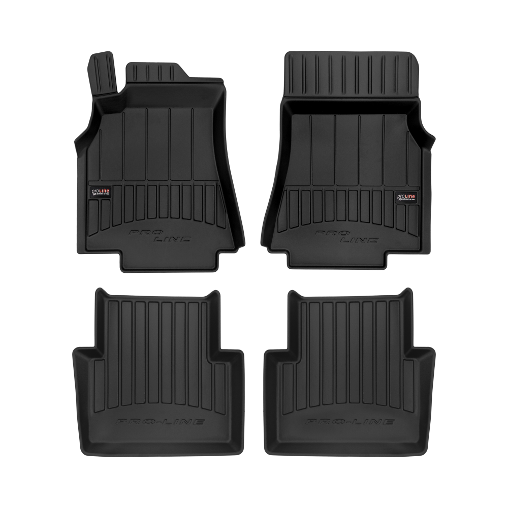Guminiai ProLine 3D kilimėliai: (aukštos kokybės plastiko, gumos mišinys / TPE, komplektas - 4vnt., juodi, krašto aukštis 7 cm, montavimo būdas - spaustukai).AUTOMOBILIŲ KILIMĖLIAI FROGUM 3D PROLINE LUXURY• Dėl naujoviškos 3D skenavimo technologijos atitinka idealiai; • Kraštai papildomai apsaugoti – aukštis 7 cm, visada švarus automobilis; • Itin patvari medžiaga su unikalia neslystančia struktūra, atspari nešvarumams. • Išskirtinis stabilumas dėl spaustukų – lengvai montuojama spustelėjus; • Pakojo zonos apsauga – komfortas, leidžiantis nuleisti vairuotojo koją;3D ProLine aukštos kokybės guminiai kilimėliai padeda išlaikyti automobilį švarų. Modernus ir funkcionalus dizainas, ir ypač aukštas kraštas garantuoja efektyvų vandens ir purvo surinkimą ir neleidžia jiems išbėgti. Taip automobilio salonas išlieka švarus. Pagaminti iš aukštos kokybės gumos, kurioje nėra toksiškų komponentų. Bekvapis. Kilimėliai idealiai atitinka ir puikiai priglunda prie salono grindų. Guminiai kilimėliai išlaiko savo elastingumą net esant temperatūros pokyčiams. Specialus paviršius neleidžia kilimėliams slysti vairuojant, o tai daro didelę įtaką saugumui ir kelionės patogumui