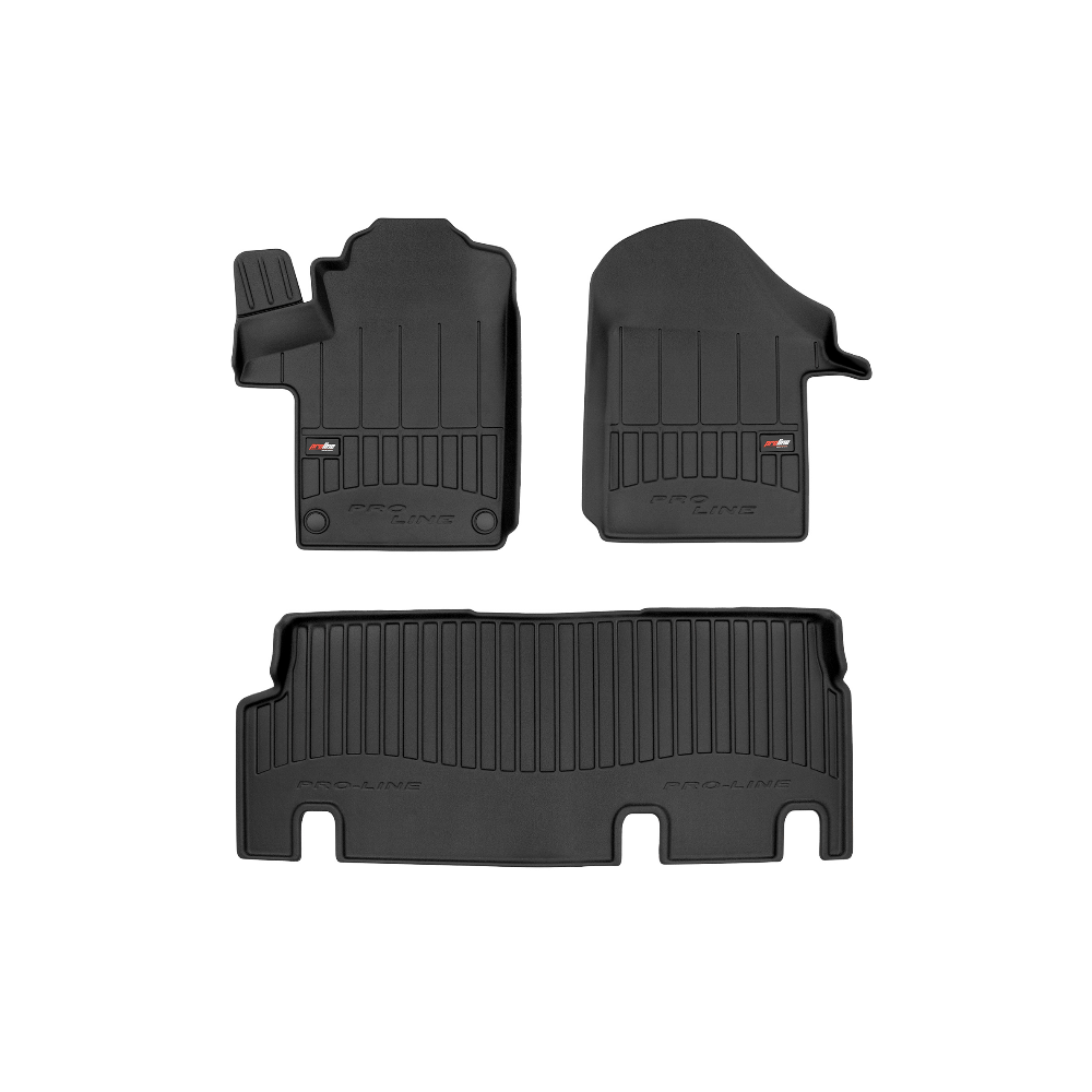 Guminiai ProLine 3D kilimėliai: (aukštos kokybės plastiko, gumos mišinys / TPE, komplektas - 3vnt., juodi, krašto aukštis 7 cm, montavimo būdas - spaustukai).AUTOMOBILIŲ KILIMĖLIAI FROGUM 3D PROLINE LUXURY• Dėl naujoviškos 3D skenavimo technologijos atitinka idealiai; • Kraštai papildomai apsaugoti – aukštis 7 cm, visada švarus automobilis; • Itin patvari medžiaga su unikalia neslystančia struktūra, atspari nešvarumams. • Išskirtinis stabilumas dėl spaustukų – lengvai montuojama spustelėjus; • Pakojo zonos apsauga – komfortas, leidžiantis nuleisti vairuotojo koją;3D ProLine aukštos kokybės guminiai kilimėliai padeda išlaikyti automobilį švarų. Modernus ir funkcionalus dizainas, ir ypač aukštas kraštas garantuoja efektyvų vandens ir purvo surinkimą ir neleidžia jiems išbėgti. Taip automobilio salonas išlieka švarus. Pagaminti iš aukštos kokybės gumos, kurioje nėra toksiškų komponentų. Bekvapis. Kilimėliai idealiai atitinka ir puikiai priglunda prie salono grindų. Guminiai kilimėliai išlaiko savo elastingumą net esant temperatūros pokyčiams. Specialus paviršius neleidžia kilimėliams slysti vairuojant, o tai daro didelę įtaką saugumui ir kelionės patogumui