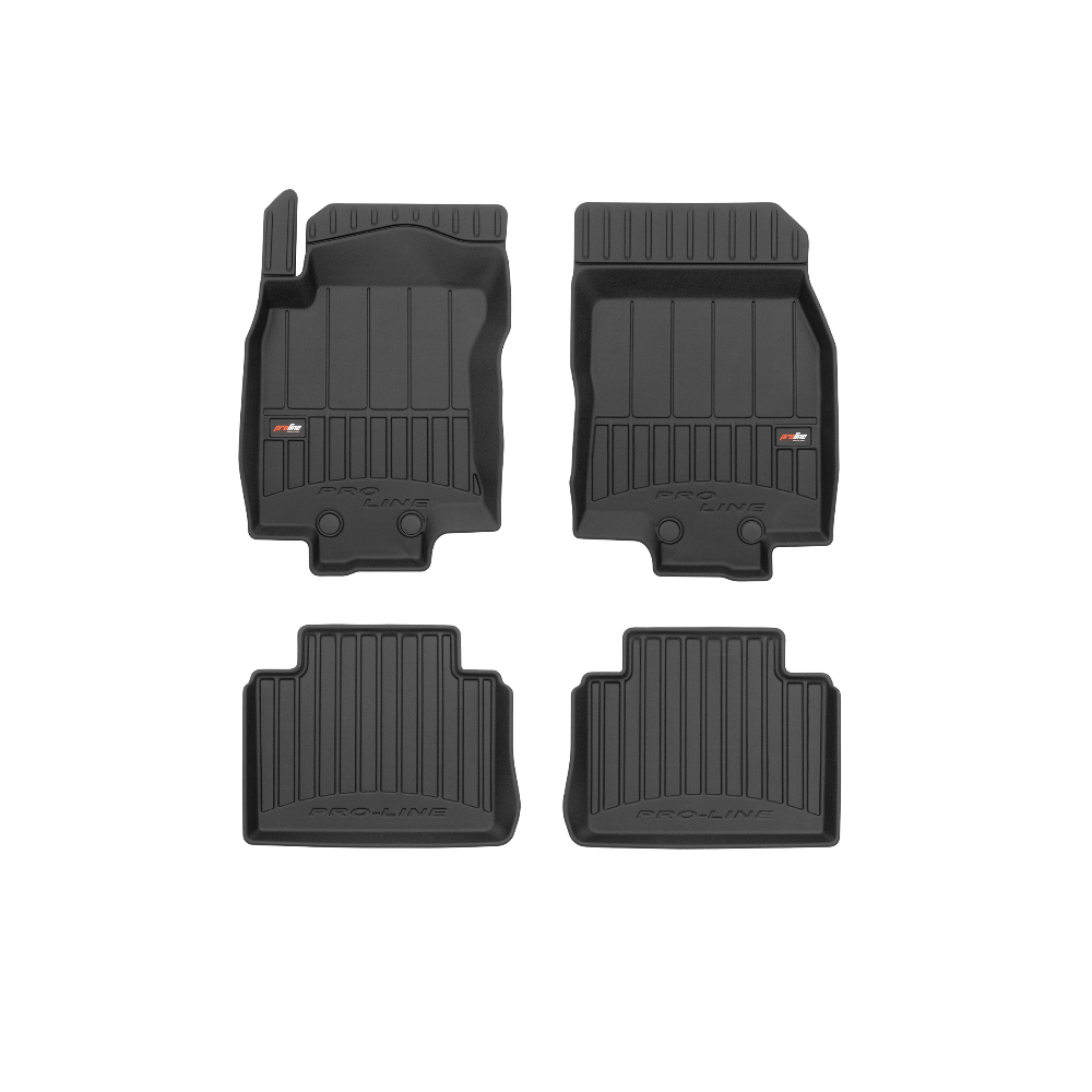 Guminiai ProLine 3D kilimėliai: (aukštos kokybės plastiko, gumos mišinys / TPE, komplektas - 4vnt., juodi, krašto aukštis 7 cm, montavimo būdas - spaustukai).AUTOMOBILIŲ KILIMĖLIAI FROGUM 3D PROLINE LUXURY• Dėl naujoviškos 3D skenavimo technologijos atitinka idealiai; • Kraštai papildomai apsaugoti – aukštis 7 cm, visada švarus automobilis; • Itin patvari medžiaga su unikalia neslystančia struktūra, atspari nešvarumams. • Išskirtinis stabilumas dėl spaustukų – lengvai montuojama spustelėjus; • Pakojo zonos apsauga – komfortas, leidžiantis nuleisti vairuotojo koją;3D ProLine aukštos kokybės guminiai kilimėliai padeda išlaikyti automobilį švarų. Modernus ir funkcionalus dizainas, ir ypač aukštas kraštas garantuoja efektyvų vandens ir purvo surinkimą ir neleidžia jiems išbėgti. Taip automobilio salonas išlieka švarus. Pagaminti iš aukštos kokybės gumos, kurioje nėra toksiškų komponentų. Bekvapis. Kilimėliai idealiai atitinka ir puikiai priglunda prie salono grindų. Guminiai kilimėliai išlaiko savo elastingumą net esant temperatūros pokyčiams. Specialus paviršius neleidžia kilimėliams slysti vairuojant, o tai daro didelę įtaką saugumui ir kelionės patogumui