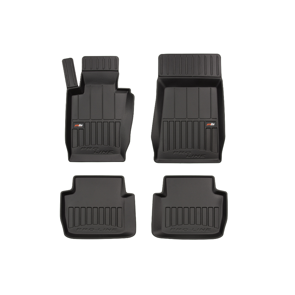 Guminiai ProLine 3D kilimėliai: (aukštos kokybės plastiko, gumos mišinys / TPE, komplektas - 4vnt., juodi, krašto aukštis 7 cm, montavimo būdas - spaustukai).AUTOMOBILIŲ KILIMĖLIAI FROGUM 3D PROLINE LUXURY• Dėl naujoviškos 3D skenavimo technologijos atitinka idealiai; • Kraštai papildomai apsaugoti – aukštis 7 cm, visada švarus automobilis; • Itin patvari medžiaga su unikalia neslystančia struktūra, atspari nešvarumams. • Išskirtinis stabilumas dėl spaustukų – lengvai montuojama spustelėjus; • Pakojo zonos apsauga – komfortas, leidžiantis nuleisti vairuotojo koją;3D ProLine aukštos kokybės guminiai kilimėliai padeda išlaikyti automobilį švarų. Modernus ir funkcionalus dizainas, ir ypač aukštas kraštas garantuoja efektyvų vandens ir purvo surinkimą ir neleidžia jiems išbėgti. Taip automobilio salonas išlieka švarus. Pagaminti iš aukštos kokybės gumos, kurioje nėra toksiškų komponentų. Bekvapis. Kilimėliai idealiai atitinka ir puikiai priglunda prie salono grindų. Guminiai kilimėliai išlaiko savo elastingumą net esant temperatūros pokyčiams. Specialus paviršius neleidžia kilimėliams slysti vairuojant, o tai daro didelę įtaką saugumui ir kelionės patogumui
