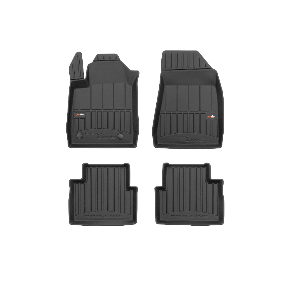Guminiai ProLine 3D kilimėliai: (aukštos kokybės plastiko, gumos mišinys / TPE, komplektas - 4vnt., juodi, krašto aukštis 7 cm, montavimo būdas - spaustukai).AUTOMOBILIŲ KILIMĖLIAI FROGUM 3D PROLINE LUXURY• Dėl naujoviškos 3D skenavimo technologijos atitinka idealiai; • Kraštai papildomai apsaugoti – aukštis 7 cm, visada švarus automobilis; • Itin patvari medžiaga su unikalia neslystančia struktūra, atspari nešvarumams. • Išskirtinis stabilumas dėl spaustukų – lengvai montuojama spustelėjus; • Pakojo zonos apsauga – komfortas, leidžiantis nuleisti vairuotojo koją;3D ProLine aukštos kokybės guminiai kilimėliai padeda išlaikyti automobilį švarų. Modernus ir funkcionalus dizainas, ir ypač aukštas kraštas garantuoja efektyvų vandens ir purvo surinkimą ir neleidžia jiems išbėgti. Taip automobilio salonas išlieka švarus. Pagaminti iš aukštos kokybės gumos, kurioje nėra toksiškų komponentų. Bekvapis. Kilimėliai idealiai atitinka ir puikiai priglunda prie salono grindų. Guminiai kilimėliai išlaiko savo elastingumą net esant temperatūros pokyčiams. Specialus paviršius neleidžia kilimėliams slysti vairuojant, o tai daro didelę įtaką saugumui ir kelionės patogumui