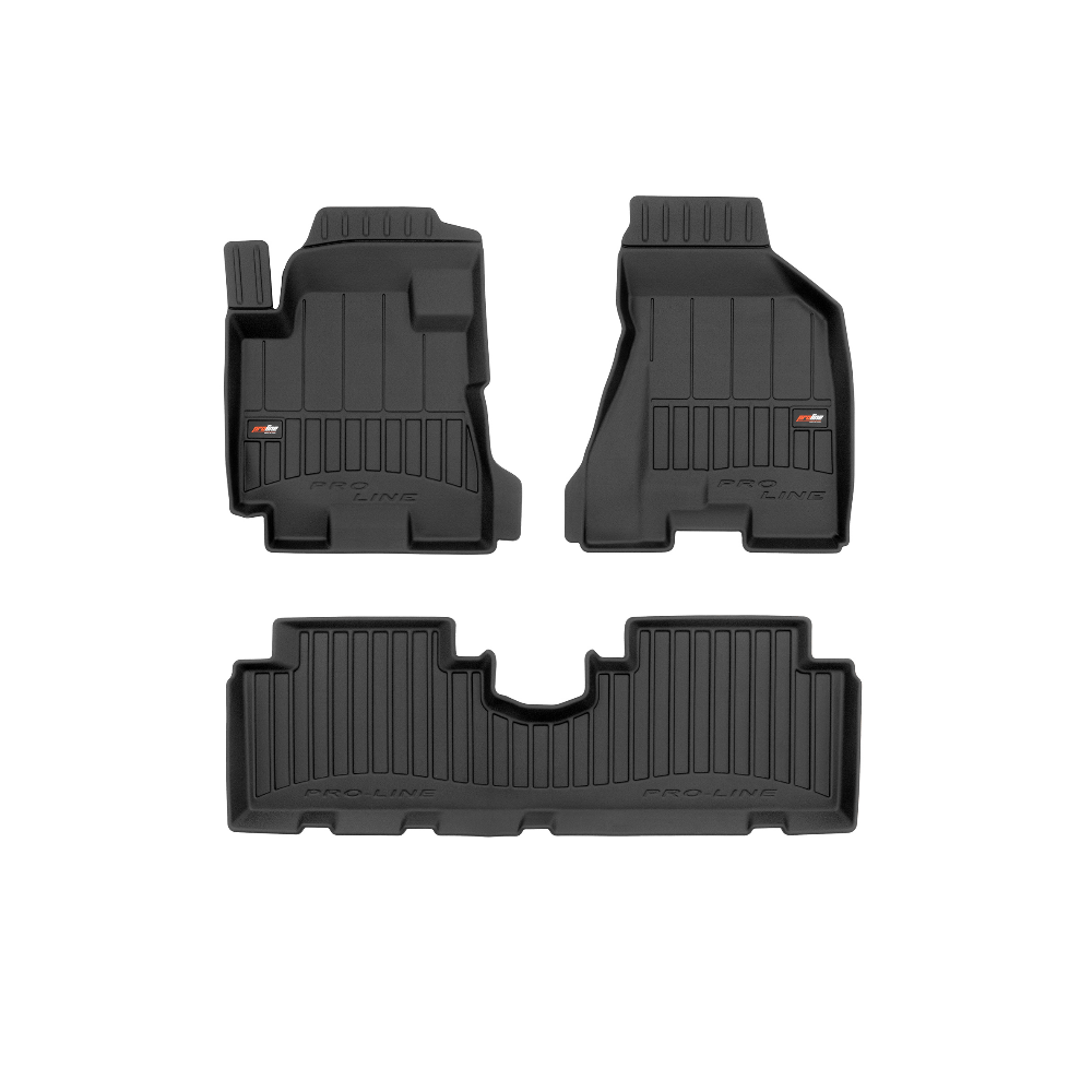 Guminiai ProLine 3D kilimėliai: (aukštos kokybės plastiko, gumos mišinys / TPE, komplektas - 3vnt., juodi, krašto aukštis 7 cm, montavimo būdas - spaustukai).AUTOMOBILIŲ KILIMĖLIAI FROGUM 3D PROLINE LUXURY• Dėl naujoviškos 3D skenavimo technologijos atitinka idealiai; • Kraštai papildomai apsaugoti – aukštis 7 cm, visada švarus automobilis; • Itin patvari medžiaga su unikalia neslystančia struktūra, atspari nešvarumams. • Išskirtinis stabilumas dėl spaustukų – lengvai montuojama spustelėjus; • Pakojo zonos apsauga – komfortas, leidžiantis nuleisti vairuotojo koją;3D ProLine aukštos kokybės guminiai kilimėliai padeda išlaikyti automobilį švarų. Modernus ir funkcionalus dizainas, ir ypač aukštas kraštas garantuoja efektyvų vandens ir purvo surinkimą ir neleidžia jiems išbėgti. Taip automobilio salonas išlieka švarus. Pagaminti iš aukštos kokybės gumos, kurioje nėra toksiškų komponentų. Bekvapis. Kilimėliai idealiai atitinka ir puikiai priglunda prie salono grindų. Guminiai kilimėliai išlaiko savo elastingumą net esant temperatūros pokyčiams. Specialus paviršius neleidžia kilimėliams slysti vairuojant, o tai daro didelę įtaką saugumui ir kelionės patogumui