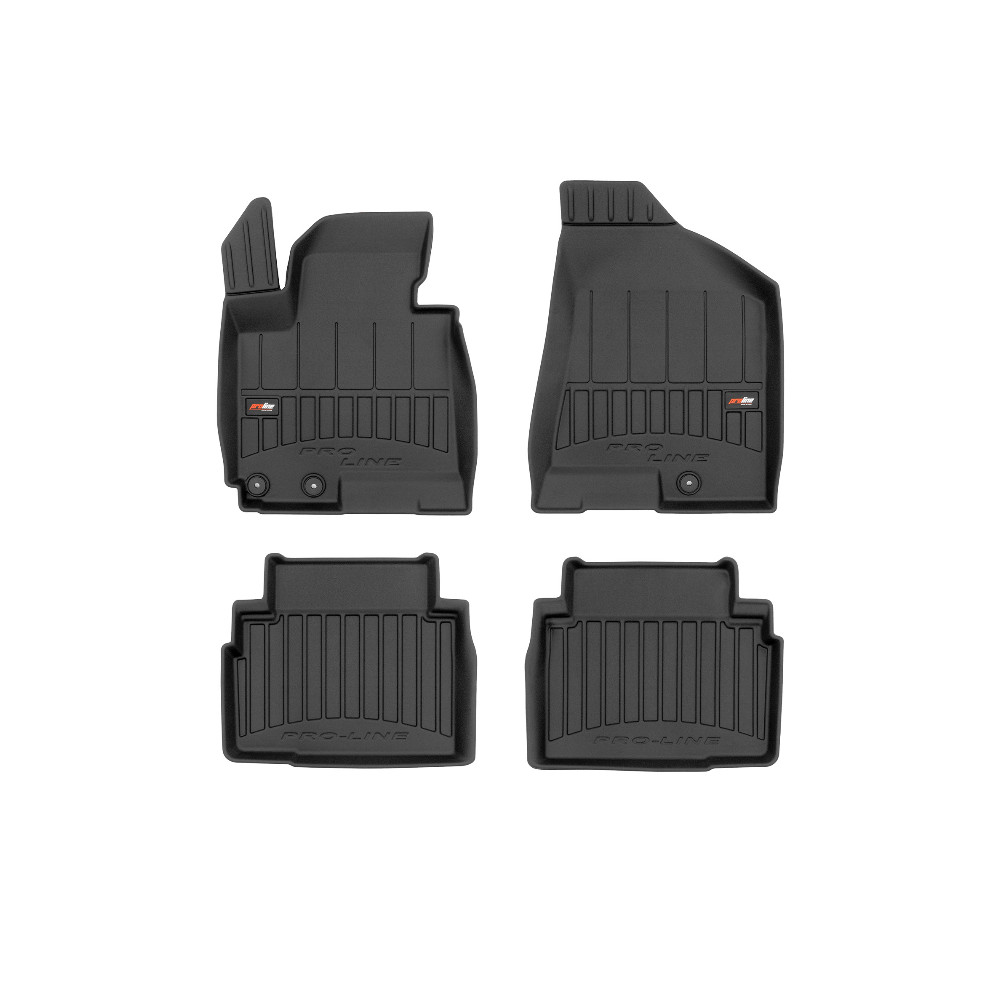 Guminiai ProLine 3D kilimėliai: (aukštos kokybės plastiko, gumos mišinys / TPE, komplektas - 4vnt., juodi, krašto aukštis 7 cm, montavimo būdas - spaustukai).AUTOMOBILIŲ KILIMĖLIAI FROGUM 3D PROLINE LUXURY• Dėl naujoviškos 3D skenavimo technologijos atitinka idealiai; • Kraštai papildomai apsaugoti – aukštis 7 cm, visada švarus automobilis; • Itin patvari medžiaga su unikalia neslystančia struktūra, atspari nešvarumams. • Išskirtinis stabilumas dėl spaustukų – lengvai montuojama spustelėjus; • Pakojo zonos apsauga – komfortas, leidžiantis nuleisti vairuotojo koją;3D ProLine aukštos kokybės guminiai kilimėliai padeda išlaikyti automobilį švarų. Modernus ir funkcionalus dizainas, ir ypač aukštas kraštas garantuoja efektyvų vandens ir purvo surinkimą ir neleidžia jiems išbėgti. Taip automobilio salonas išlieka švarus. Pagaminti iš aukštos kokybės gumos, kurioje nėra toksiškų komponentų. Bekvapis. Kilimėliai idealiai atitinka ir puikiai priglunda prie salono grindų. Guminiai kilimėliai išlaiko savo elastingumą net esant temperatūros pokyčiams. Specialus paviršius neleidžia kilimėliams slysti vairuojant, o tai daro didelę įtaką saugumui ir kelionės patogumui