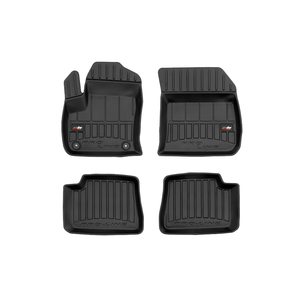 Guminiai ProLine 3D kilimėliai: (aukštos kokybės plastiko, gumos mišinys / TPE, komplektas - 4vnt., juodi, krašto aukštis 7 cm, montavimo būdas - spaustukai).AUTOMOBILIŲ KILIMĖLIAI FROGUM 3D PROLINE LUXURY• Dėl naujoviškos 3D skenavimo technologijos atitinka idealiai; • Kraštai papildomai apsaugoti – aukštis 7 cm, visada švarus automobilis; • Itin patvari medžiaga su unikalia neslystančia struktūra, atspari nešvarumams. • Išskirtinis stabilumas dėl spaustukų – lengvai montuojama spustelėjus; • Pakojo zonos apsauga – komfortas, leidžiantis nuleisti vairuotojo koją;3D ProLine aukštos kokybės guminiai kilimėliai padeda išlaikyti automobilį švarų. Modernus ir funkcionalus dizainas, ir ypač aukštas kraštas garantuoja efektyvų vandens ir purvo surinkimą ir neleidžia jiems išbėgti. Taip automobilio salonas išlieka švarus. Pagaminti iš aukštos kokybės gumos, kurioje nėra toksiškų komponentų. Bekvapis. Kilimėliai idealiai atitinka ir puikiai priglunda prie salono grindų. Guminiai kilimėliai išlaiko savo elastingumą net esant temperatūros pokyčiams. Specialus paviršius neleidžia kilimėliams slysti vairuojant, o tai daro didelę įtaką saugumui ir kelionės patogumui