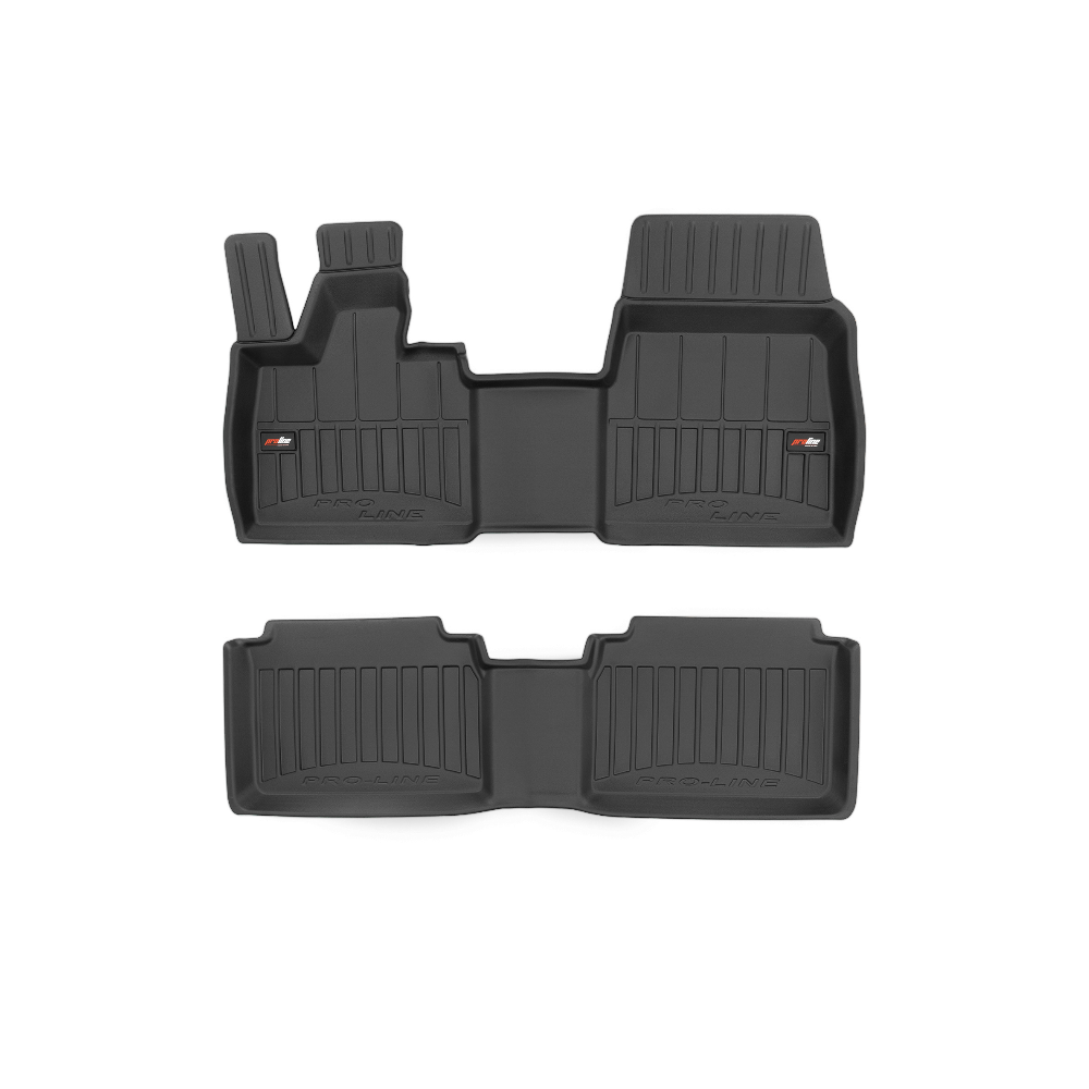 Guminiai ProLine 3D kilimėliai: (aukštos kokybės plastiko, gumos mišinys / TPE, komplektas - 2vnt., juodi, krašto aukštis 7 cm, montavimo būdas - spaustukai).AUTOMOBILIŲ KILIMĖLIAI FROGUM 3D PROLINE LUXURY• Dėl naujoviškos 3D skenavimo technologijos atitinka idealiai; • Kraštai papildomai apsaugoti – aukštis 7 cm, visada švarus automobilis; • Itin patvari medžiaga su unikalia neslystančia struktūra, atspari nešvarumams. • Išskirtinis stabilumas dėl spaustukų – lengvai montuojama spustelėjus; • Pakojo zonos apsauga – komfortas, leidžiantis nuleisti vairuotojo koją;3D ProLine aukštos kokybės guminiai kilimėliai padeda išlaikyti automobilį švarų. Modernus ir funkcionalus dizainas, ir ypač aukštas kraštas garantuoja efektyvų vandens ir purvo surinkimą ir neleidžia jiems išbėgti. Taip automobilio salonas išlieka švarus. Pagaminti iš aukštos kokybės gumos, kurioje nėra toksiškų komponentų. Bekvapis. Kilimėliai idealiai atitinka ir puikiai priglunda prie salono grindų. Guminiai kilimėliai išlaiko savo elastingumą net esant temperatūros pokyčiams. Specialus paviršius neleidžia kilimėliams slysti vairuojant, o tai daro didelę įtaką saugumui ir kelionės patogumui
