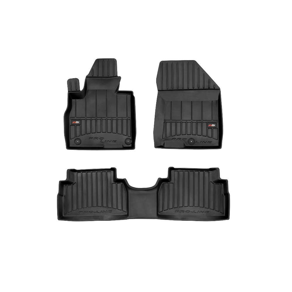 Guminiai ProLine 3D kilimėliai: (aukštos kokybės plastiko, gumos mišinys / TPE, komplektas - 3vnt., juodi, krašto aukštis 7 cm, montavimo būdas - spaustukai).AUTOMOBILIŲ KILIMĖLIAI FROGUM 3D PROLINE LUXURY• Dėl naujoviškos 3D skenavimo technologijos atitinka idealiai; • Kraštai papildomai apsaugoti – aukštis 7 cm, visada švarus automobilis; • Itin patvari medžiaga su unikalia neslystančia struktūra, atspari nešvarumams. • Išskirtinis stabilumas dėl spaustukų – lengvai montuojama spustelėjus; • Pakojo zonos apsauga – komfortas, leidžiantis nuleisti vairuotojo koją;3D ProLine aukštos kokybės guminiai kilimėliai padeda išlaikyti automobilį švarų. Modernus ir funkcionalus dizainas, ir ypač aukštas kraštas garantuoja efektyvų vandens ir purvo surinkimą ir neleidžia jiems išbėgti. Taip automobilio salonas išlieka švarus. Pagaminti iš aukštos kokybės gumos, kurioje nėra toksiškų komponentų. Bekvapis. Kilimėliai idealiai atitinka ir puikiai priglunda prie salono grindų. Guminiai kilimėliai išlaiko savo elastingumą net esant temperatūros pokyčiams. Specialus paviršius neleidžia kilimėliams slysti vairuojant, o tai daro didelę įtaką saugumui ir kelionės patogumui