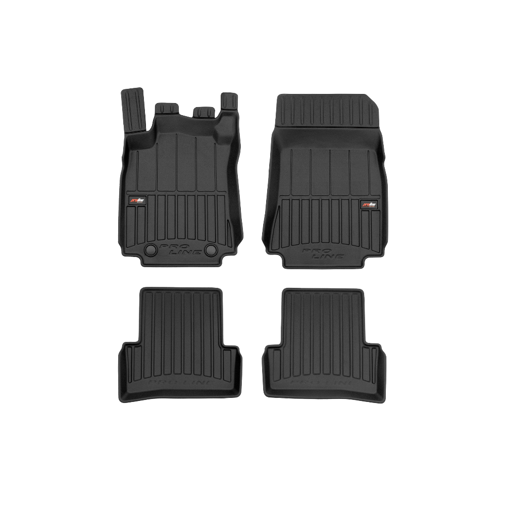Guminiai ProLine 3D kilimėliai: (aukštos kokybės plastiko, gumos mišinys / TPE, komplektas - 4vnt., juodi, krašto aukštis 7 cm, montavimo būdas - spaustukai).AUTOMOBILIŲ KILIMĖLIAI FROGUM 3D PROLINE LUXURY• Dėl naujoviškos 3D skenavimo technologijos atitinka idealiai; • Kraštai papildomai apsaugoti – aukštis 7 cm, visada švarus automobilis; • Itin patvari medžiaga su unikalia neslystančia struktūra, atspari nešvarumams. • Išskirtinis stabilumas dėl spaustukų – lengvai montuojama spustelėjus; • Pakojo zonos apsauga – komfortas, leidžiantis nuleisti vairuotojo koją;3D ProLine aukštos kokybės guminiai kilimėliai padeda išlaikyti automobilį švarų. Modernus ir funkcionalus dizainas, ir ypač aukštas kraštas garantuoja efektyvų vandens ir purvo surinkimą ir neleidžia jiems išbėgti. Taip automobilio salonas išlieka švarus. Pagaminti iš aukštos kokybės gumos, kurioje nėra toksiškų komponentų. Bekvapis. Kilimėliai idealiai atitinka ir puikiai priglunda prie salono grindų. Guminiai kilimėliai išlaiko savo elastingumą net esant temperatūros pokyčiams. Specialus paviršius neleidžia kilimėliams slysti vairuojant, o tai daro didelę įtaką saugumui ir kelionės patogumui