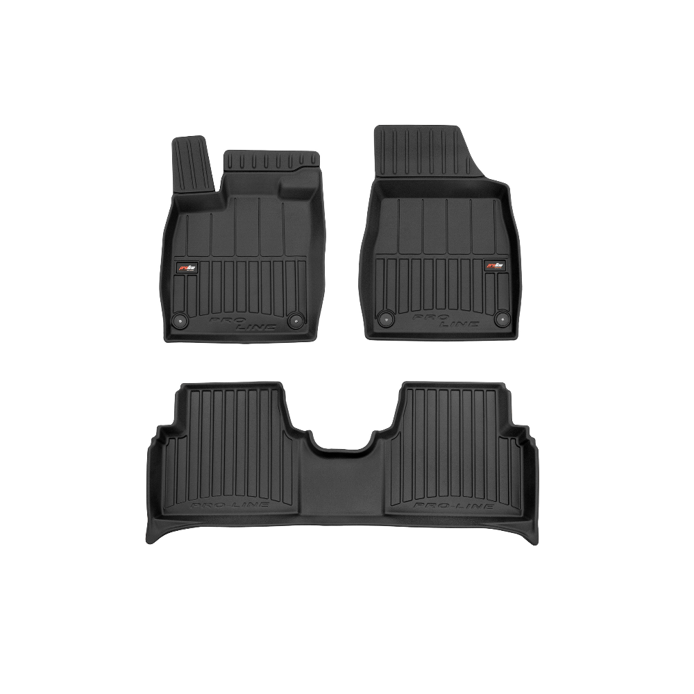 Guminiai ProLine 3D kilimėliai: (aukštos kokybės plastiko, gumos mišinys / TPE, komplektas - 3vnt., juodi, krašto aukštis 7 cm, montavimo būdas - spaustukai).AUTOMOBILIŲ KILIMĖLIAI FROGUM 3D PROLINE LUXURY• Dėl naujoviškos 3D skenavimo technologijos atitinka idealiai; • Kraštai papildomai apsaugoti – aukštis 7 cm, visada švarus automobilis; • Itin patvari medžiaga su unikalia neslystančia struktūra, atspari nešvarumams. • Išskirtinis stabilumas dėl spaustukų – lengvai montuojama spustelėjus; • Pakojo zonos apsauga – komfortas, leidžiantis nuleisti vairuotojo koją;3D ProLine aukštos kokybės guminiai kilimėliai padeda išlaikyti automobilį švarų. Modernus ir funkcionalus dizainas, ir ypač aukštas kraštas garantuoja efektyvų vandens ir purvo surinkimą ir neleidžia jiems išbėgti. Taip automobilio salonas išlieka švarus. Pagaminti iš aukštos kokybės gumos, kurioje nėra toksiškų komponentų. Bekvapis. Kilimėliai idealiai atitinka ir puikiai priglunda prie salono grindų. Guminiai kilimėliai išlaiko savo elastingumą net esant temperatūros pokyčiams. Specialus paviršius neleidžia kilimėliams slysti vairuojant, o tai daro didelę įtaką saugumui ir kelionės patogumui