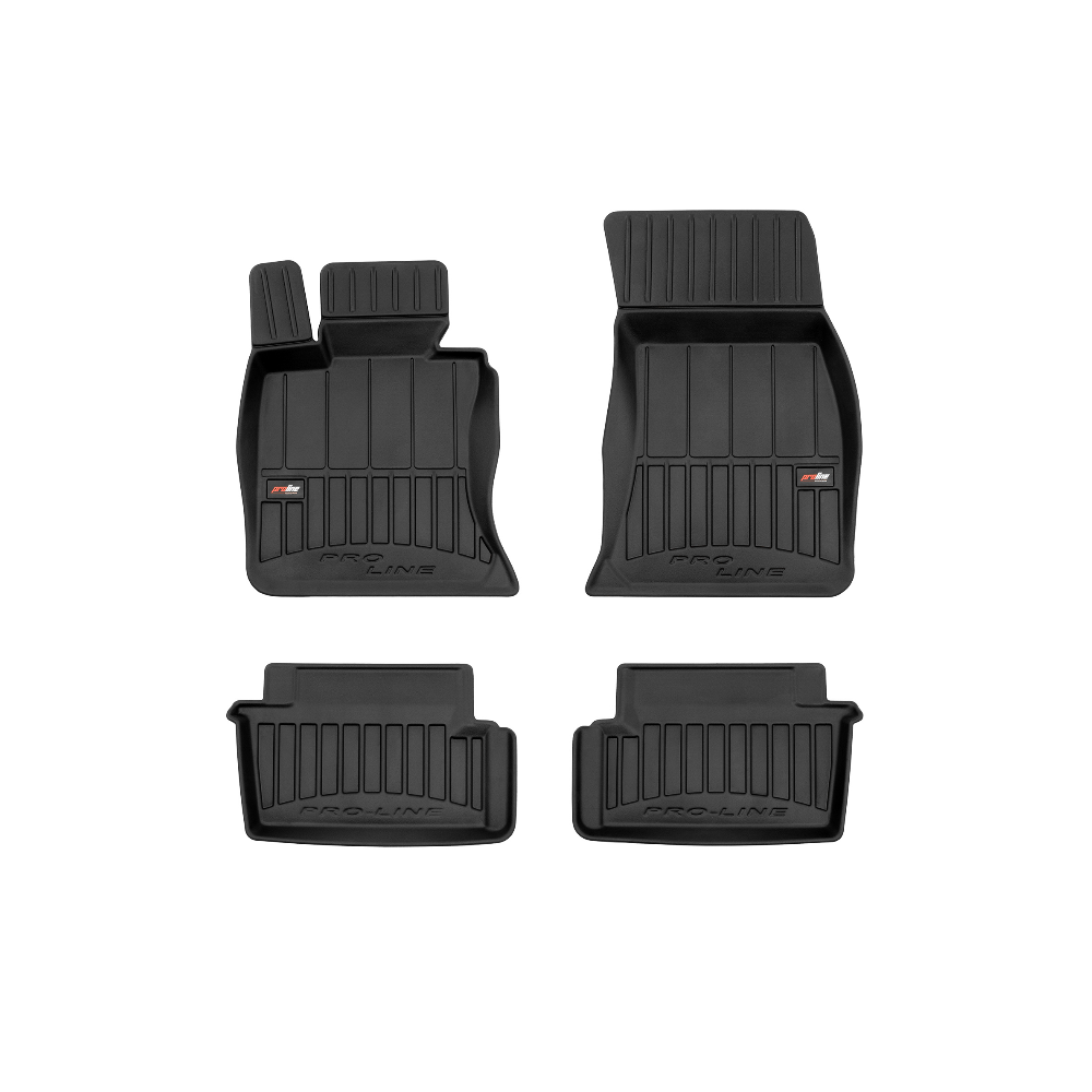 Guminiai ProLine 3D kilimėliai: (aukštos kokybės plastiko, gumos mišinys / TPE, komplektas - 4vnt., juodi, krašto aukštis 7 cm, montavimo būdas - spaustukai).AUTOMOBILIŲ KILIMĖLIAI FROGUM 3D PROLINE LUXURY• Dėl naujoviškos 3D skenavimo technologijos atitinka idealiai; • Kraštai papildomai apsaugoti – aukštis 7 cm, visada švarus automobilis; • Itin patvari medžiaga su unikalia neslystančia struktūra, atspari nešvarumams. • Išskirtinis stabilumas dėl spaustukų – lengvai montuojama spustelėjus; • Pakojo zonos apsauga – komfortas, leidžiantis nuleisti vairuotojo koją;3D ProLine aukštos kokybės guminiai kilimėliai padeda išlaikyti automobilį švarų. Modernus ir funkcionalus dizainas, ir ypač aukštas kraštas garantuoja efektyvų vandens ir purvo surinkimą ir neleidžia jiems išbėgti. Taip automobilio salonas išlieka švarus. Pagaminti iš aukštos kokybės gumos, kurioje nėra toksiškų komponentų. Bekvapis. Kilimėliai idealiai atitinka ir puikiai priglunda prie salono grindų. Guminiai kilimėliai išlaiko savo elastingumą net esant temperatūros pokyčiams. Specialus paviršius neleidžia kilimėliams slysti vairuojant, o tai daro didelę įtaką saugumui ir kelionės patogumui