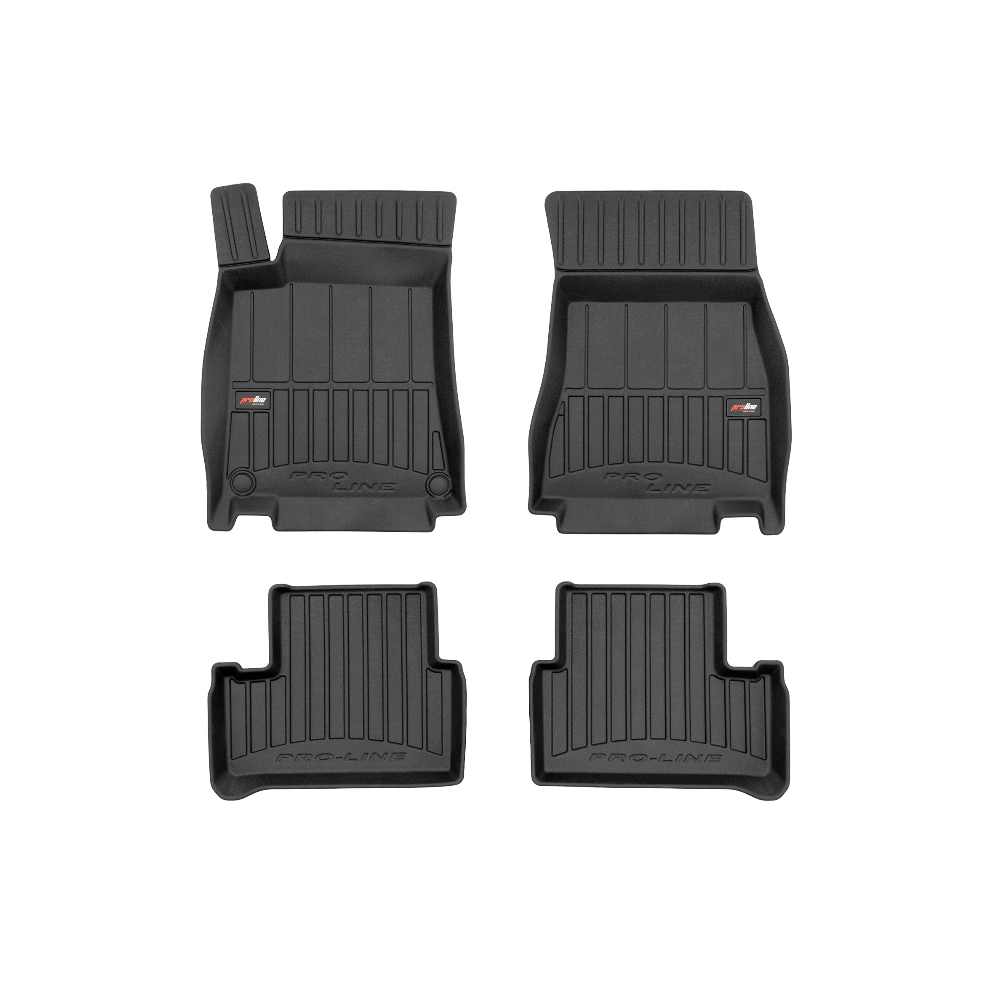 Guminiai ProLine 3D kilimėliai: (aukštos kokybės plastiko, gumos mišinys / TPE, komplektas - 4vnt., juodi, krašto aukštis 7 cm, montavimo būdas - spaustukai).AUTOMOBILIŲ KILIMĖLIAI FROGUM 3D PROLINE LUXURY• Dėl naujoviškos 3D skenavimo technologijos atitinka idealiai; • Kraštai papildomai apsaugoti – aukštis 7 cm, visada švarus automobilis; • Itin patvari medžiaga su unikalia neslystančia struktūra, atspari nešvarumams. • Išskirtinis stabilumas dėl spaustukų – lengvai montuojama spustelėjus; • Pakojo zonos apsauga – komfortas, leidžiantis nuleisti vairuotojo koją;3D ProLine aukštos kokybės guminiai kilimėliai padeda išlaikyti automobilį švarų. Modernus ir funkcionalus dizainas, ir ypač aukštas kraštas garantuoja efektyvų vandens ir purvo surinkimą ir neleidžia jiems išbėgti. Taip automobilio salonas išlieka švarus. Pagaminti iš aukštos kokybės gumos, kurioje nėra toksiškų komponentų. Bekvapis. Kilimėliai idealiai atitinka ir puikiai priglunda prie salono grindų. Guminiai kilimėliai išlaiko savo elastingumą net esant temperatūros pokyčiams. Specialus paviršius neleidžia kilimėliams slysti vairuojant, o tai daro didelę įtaką saugumui ir kelionės patogumui