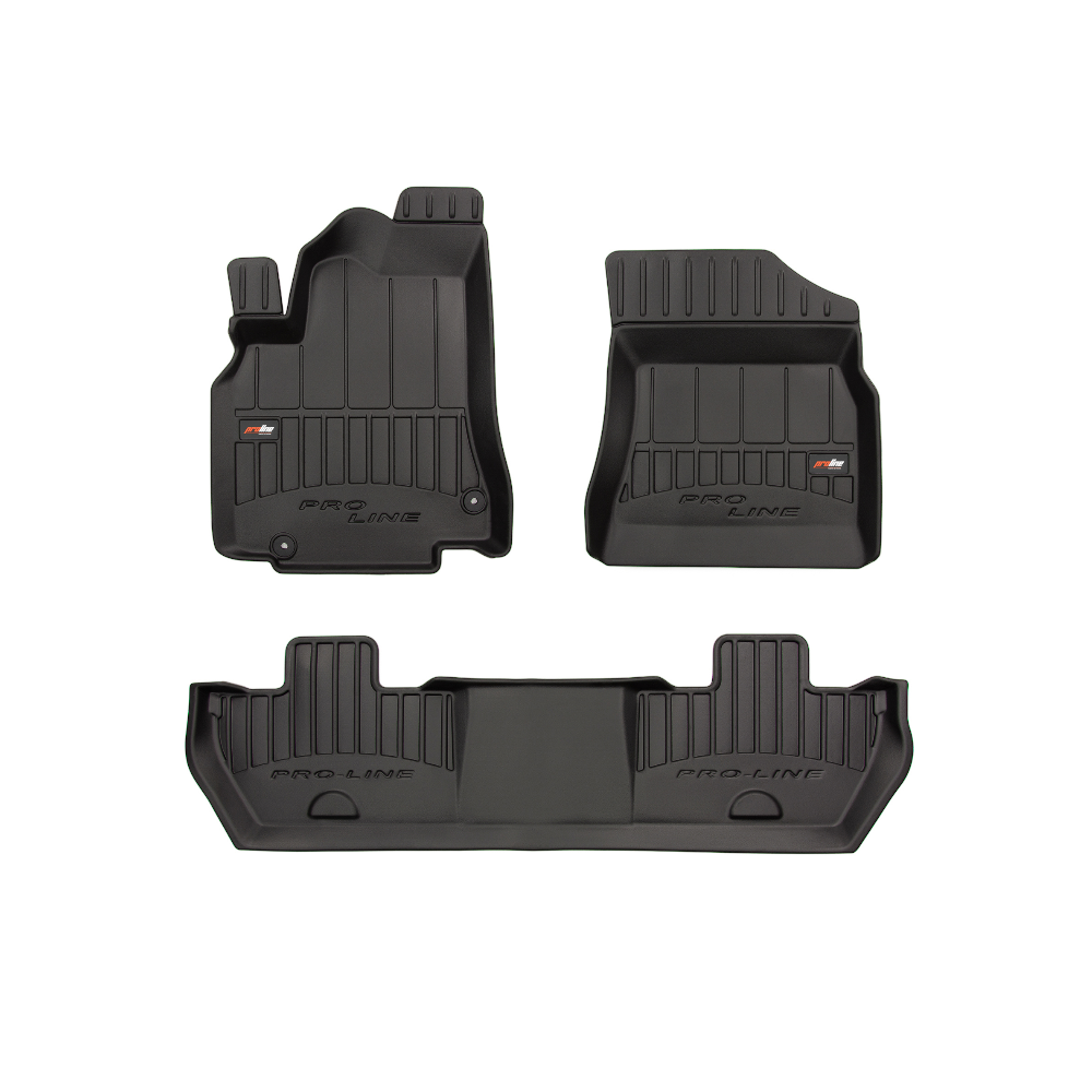 Guminiai ProLine 3D kilimėliai: (aukštos kokybės plastiko, gumos mišinys / TPE, komplektas - 3vnt., juodi, krašto aukštis 7 cm, montavimo būdas - spaustukai).AUTOMOBILIŲ KILIMĖLIAI FROGUM 3D PROLINE LUXURY• Dėl naujoviškos 3D skenavimo technologijos atitinka idealiai; • Kraštai papildomai apsaugoti – aukštis 7 cm, visada švarus automobilis; • Itin patvari medžiaga su unikalia neslystančia struktūra, atspari nešvarumams. • Išskirtinis stabilumas dėl spaustukų – lengvai montuojama spustelėjus; • Pakojo zonos apsauga – komfortas, leidžiantis nuleisti vairuotojo koją;3D ProLine aukštos kokybės guminiai kilimėliai padeda išlaikyti automobilį švarų. Modernus ir funkcionalus dizainas, ir ypač aukštas kraštas garantuoja efektyvų vandens ir purvo surinkimą ir neleidžia jiems išbėgti. Taip automobilio salonas išlieka švarus. Pagaminti iš aukštos kokybės gumos, kurioje nėra toksiškų komponentų. Bekvapis. Kilimėliai idealiai atitinka ir puikiai priglunda prie salono grindų. Guminiai kilimėliai išlaiko savo elastingumą net esant temperatūros pokyčiams. Specialus paviršius neleidžia kilimėliams slysti vairuojant, o tai daro didelę įtaką saugumui ir kelionės patogumui
