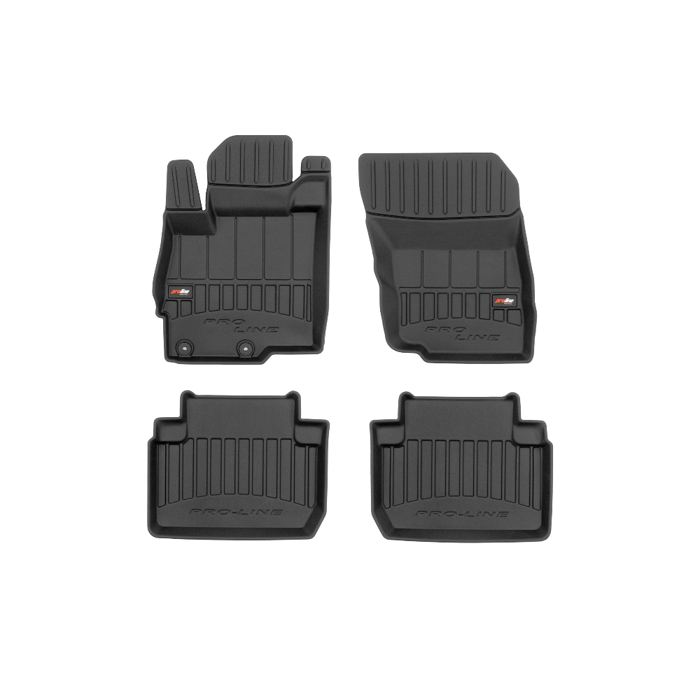 Guminiai ProLine 3D kilimėliai: (aukštos kokybės plastiko, gumos mišinys / TPE, komplektas - 4vnt., juodi, krašto aukštis 7 cm, montavimo būdas - spaustukai).AUTOMOBILIŲ KILIMĖLIAI FROGUM 3D PROLINE LUXURY• Dėl naujoviškos 3D skenavimo technologijos atitinka idealiai; • Kraštai papildomai apsaugoti – aukštis 7 cm, visada švarus automobilis; • Itin patvari medžiaga su unikalia neslystančia struktūra, atspari nešvarumams. • Išskirtinis stabilumas dėl spaustukų – lengvai montuojama spustelėjus; • Pakojo zonos apsauga – komfortas, leidžiantis nuleisti vairuotojo koją;3D ProLine aukštos kokybės guminiai kilimėliai padeda išlaikyti automobilį švarų. Modernus ir funkcionalus dizainas, ir ypač aukštas kraštas garantuoja efektyvų vandens ir purvo surinkimą ir neleidžia jiems išbėgti. Taip automobilio salonas išlieka švarus. Pagaminti iš aukštos kokybės gumos, kurioje nėra toksiškų komponentų. Bekvapis. Kilimėliai idealiai atitinka ir puikiai priglunda prie salono grindų. Guminiai kilimėliai išlaiko savo elastingumą net esant temperatūros pokyčiams. Specialus paviršius neleidžia kilimėliams slysti vairuojant, o tai daro didelę įtaką saugumui ir kelionės patogumui