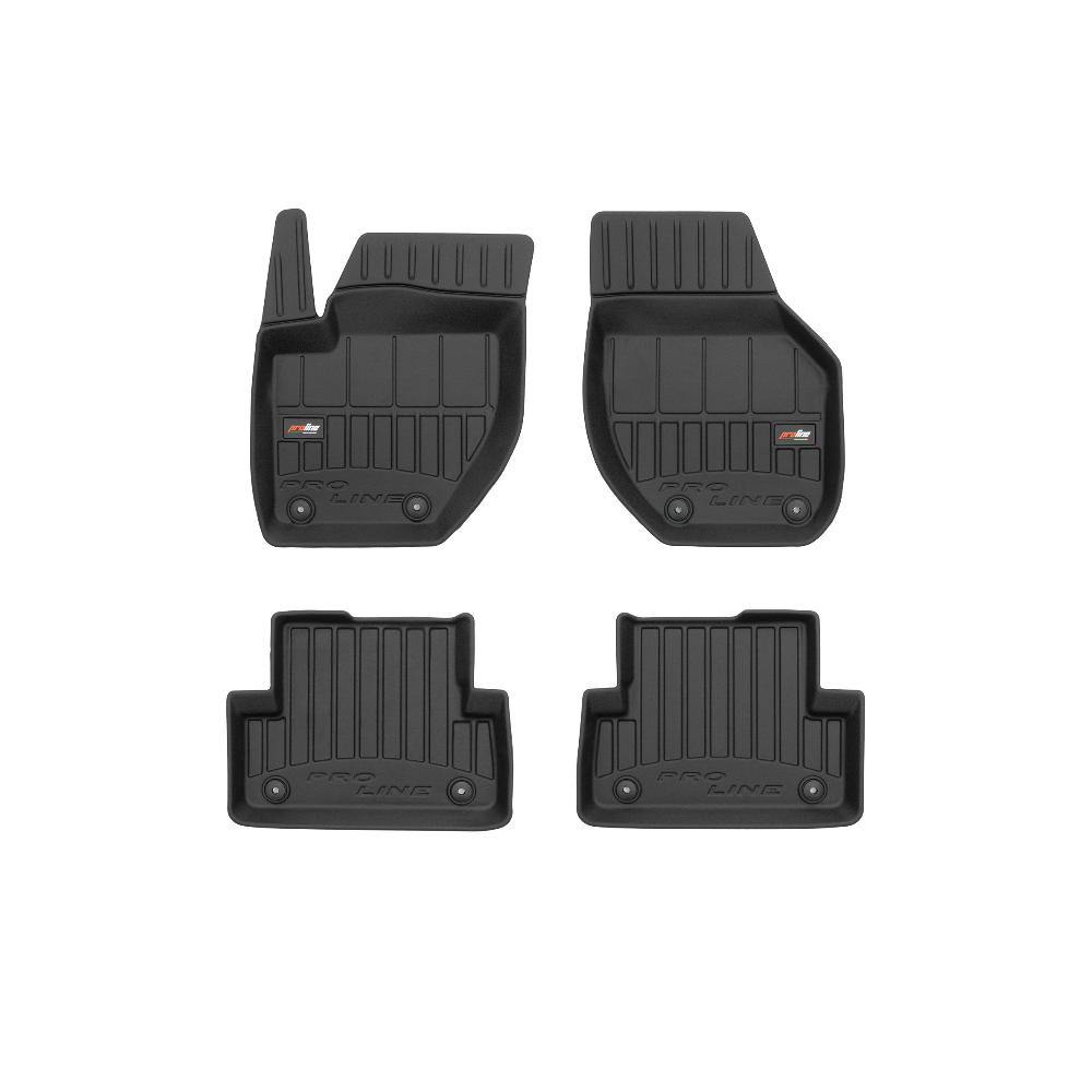 Guminiai ProLine 3D kilimėliai: (aukštos kokybės plastiko, gumos mišinys / TPE, komplektas - 4vnt., juodi, krašto aukštis 7 cm, montavimo būdas - spaustukai).AUTOMOBILIŲ KILIMĖLIAI FROGUM 3D PROLINE LUXURY• Dėl naujoviškos 3D skenavimo technologijos atitinka idealiai; • Kraštai papildomai apsaugoti – aukštis 7 cm, visada švarus automobilis; • Itin patvari medžiaga su unikalia neslystančia struktūra, atspari nešvarumams. • Išskirtinis stabilumas dėl spaustukų – lengvai montuojama spustelėjus; • Pakojo zonos apsauga – komfortas, leidžiantis nuleisti vairuotojo koją;3D ProLine aukštos kokybės guminiai kilimėliai padeda išlaikyti automobilį švarų. Modernus ir funkcionalus dizainas, ir ypač aukštas kraštas garantuoja efektyvų vandens ir purvo surinkimą ir neleidžia jiems išbėgti. Taip automobilio salonas išlieka švarus. Pagaminti iš aukštos kokybės gumos, kurioje nėra toksiškų komponentų. Bekvapis. Kilimėliai idealiai atitinka ir puikiai priglunda prie salono grindų. Guminiai kilimėliai išlaiko savo elastingumą net esant temperatūros pokyčiams. Specialus paviršius neleidžia kilimėliams slysti vairuojant, o tai daro didelę įtaką saugumui ir kelionės patogumui