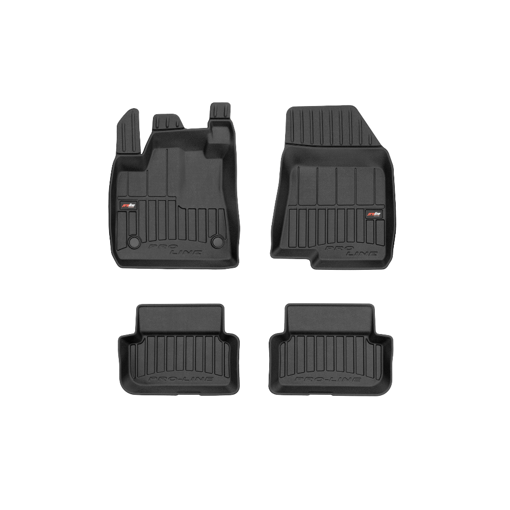 Guminiai ProLine 3D kilimėliai: (aukštos kokybės plastiko, gumos mišinys / TPE, komplektas - 4vnt., juodi, krašto aukštis 7 cm, montavimo būdas - spaustukai).AUTOMOBILIŲ KILIMĖLIAI FROGUM 3D PROLINE LUXURY• Dėl naujoviškos 3D skenavimo technologijos atitinka idealiai; • Kraštai papildomai apsaugoti – aukštis 7 cm, visada švarus automobilis; • Itin patvari medžiaga su unikalia neslystančia struktūra, atspari nešvarumams. • Išskirtinis stabilumas dėl spaustukų – lengvai montuojama spustelėjus; • Pakojo zonos apsauga – komfortas, leidžiantis nuleisti vairuotojo koją;3D ProLine aukštos kokybės guminiai kilimėliai padeda išlaikyti automobilį švarų. Modernus ir funkcionalus dizainas, ir ypač aukštas kraštas garantuoja efektyvų vandens ir purvo surinkimą ir neleidžia jiems išbėgti. Taip automobilio salonas išlieka švarus. Pagaminti iš aukštos kokybės gumos, kurioje nėra toksiškų komponentų. Bekvapis. Kilimėliai idealiai atitinka ir puikiai priglunda prie salono grindų. Guminiai kilimėliai išlaiko savo elastingumą net esant temperatūros pokyčiams. Specialus paviršius neleidžia kilimėliams slysti vairuojant, o tai daro didelę įtaką saugumui ir kelionės patogumui